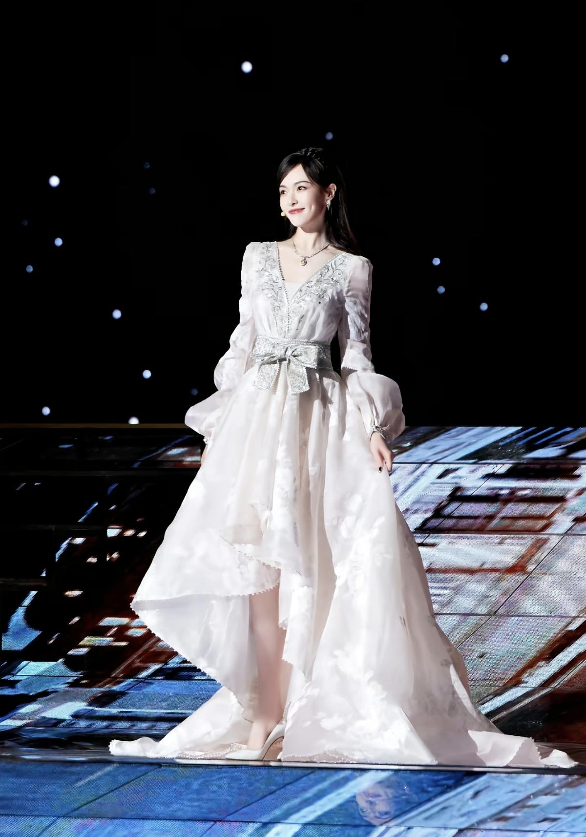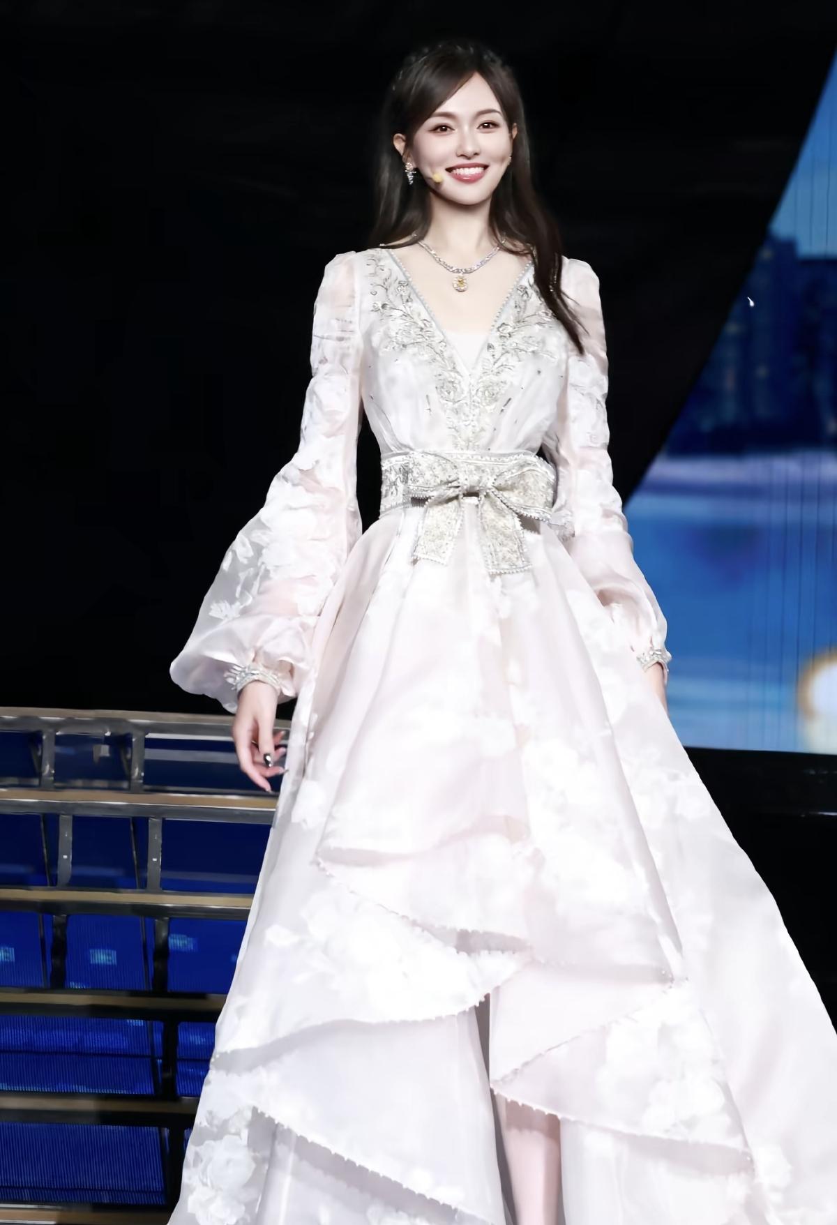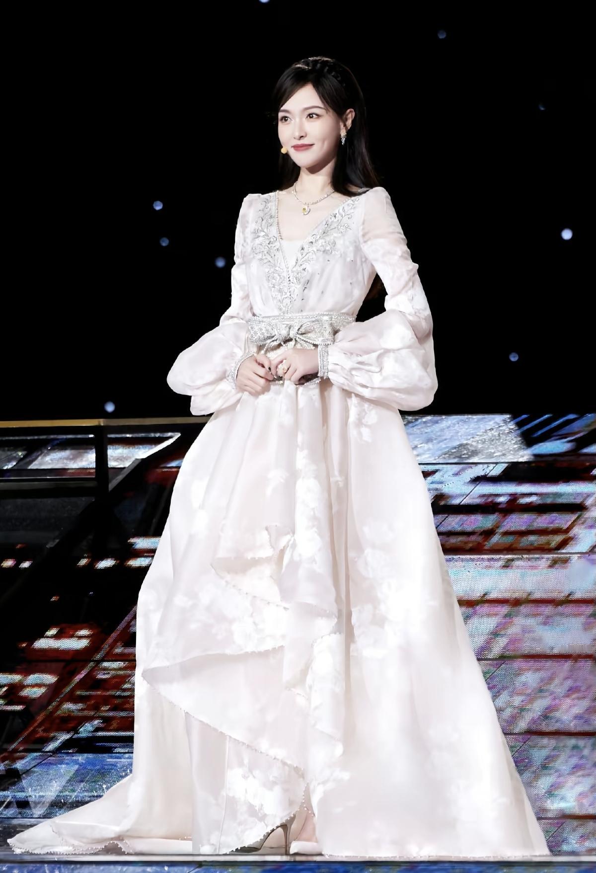 佟丽娅,白色蕾丝长裙穿搭,浪漫优雅的丫丫。佟丽娅