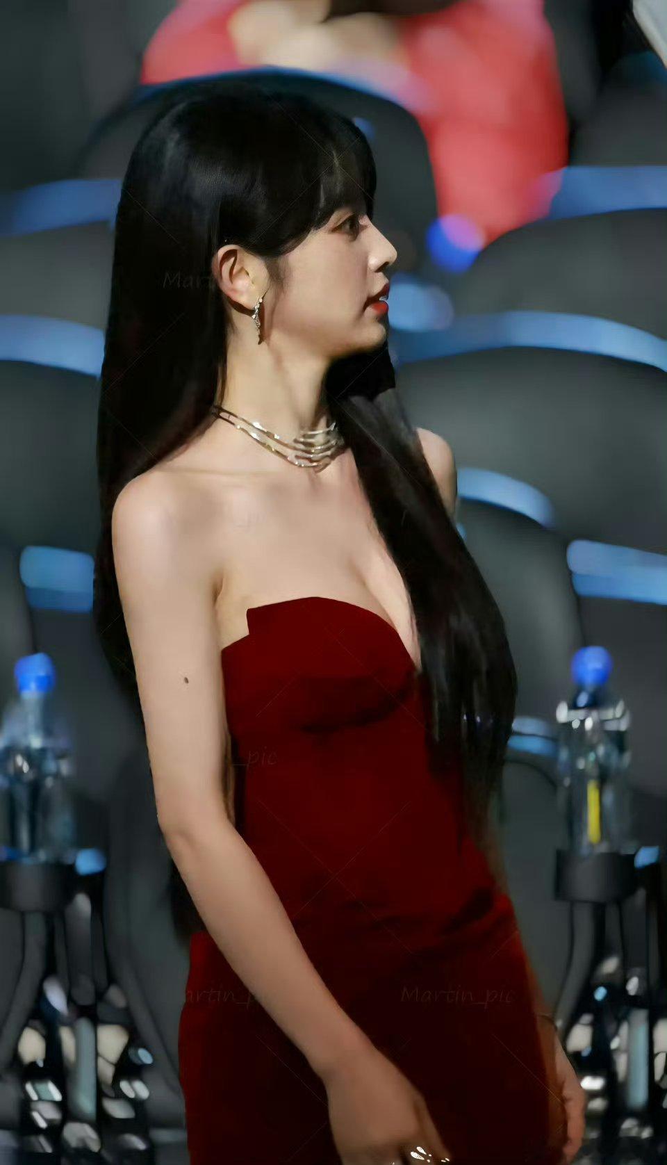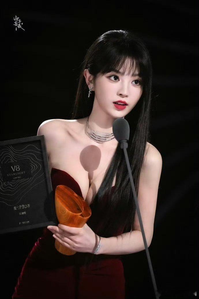 刘亦菲的礼服造型真的绝了![比心]玫瑰红抹胸裙一出场就惊艳全场,亮片如银河倾洒,