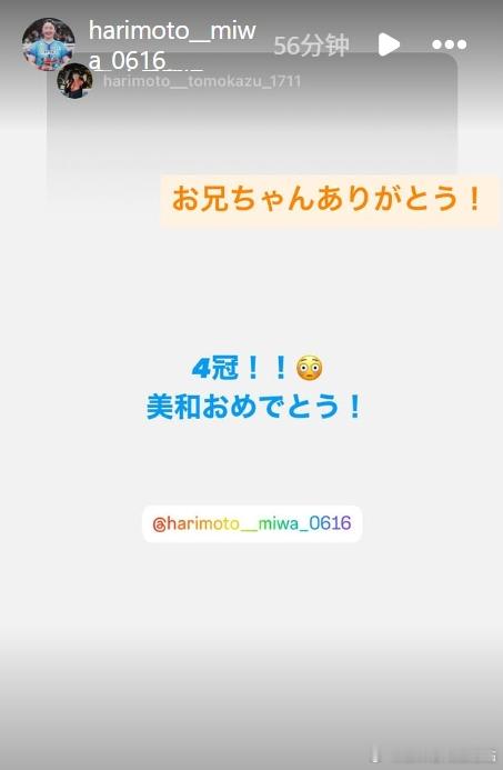 智和:“4 冠!!😲美和,恭喜你!” (机翻)