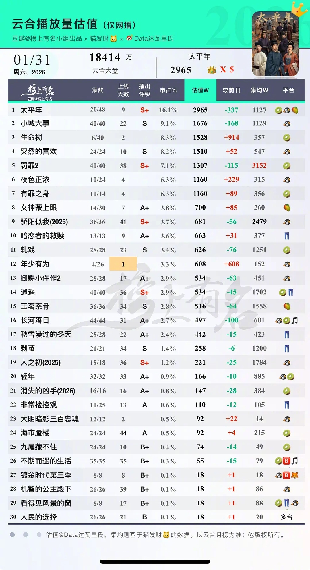 最近上了挺多新剧,但大盘还是冷的🙊