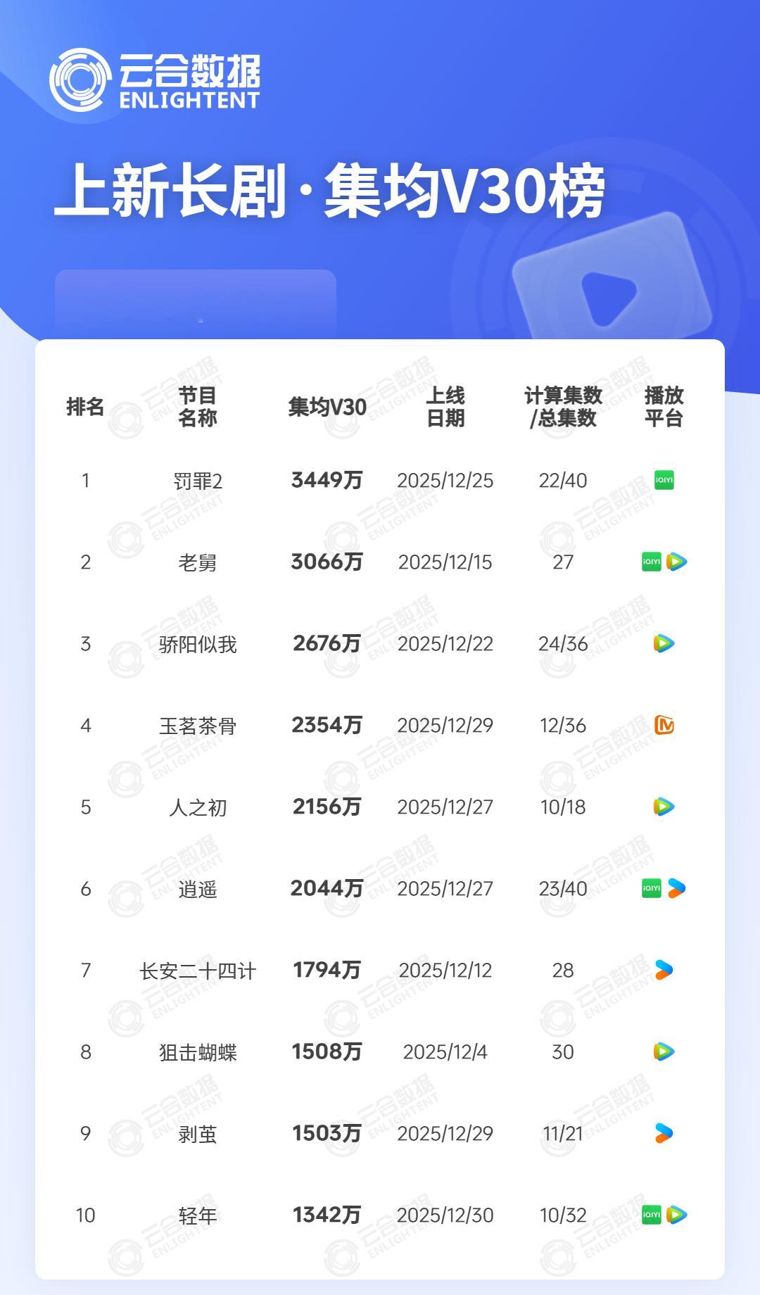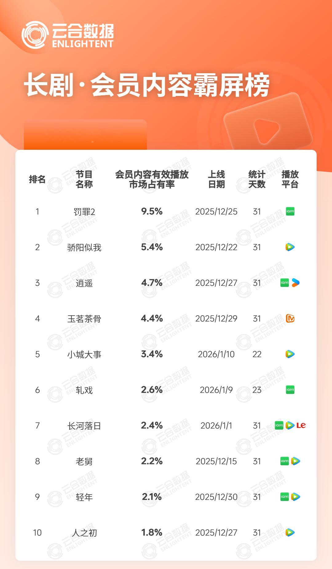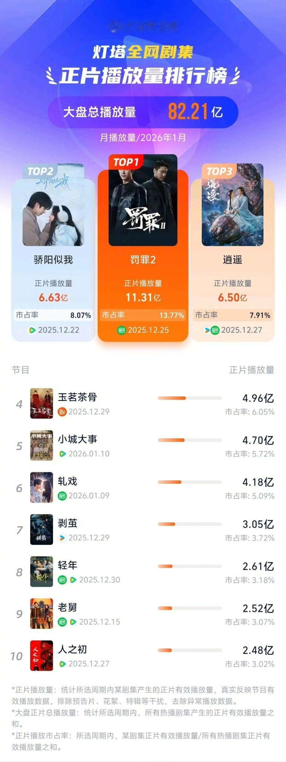 2026年1月长剧集的赢家非《罚罪2》莫属,数据这块儿同期没对手