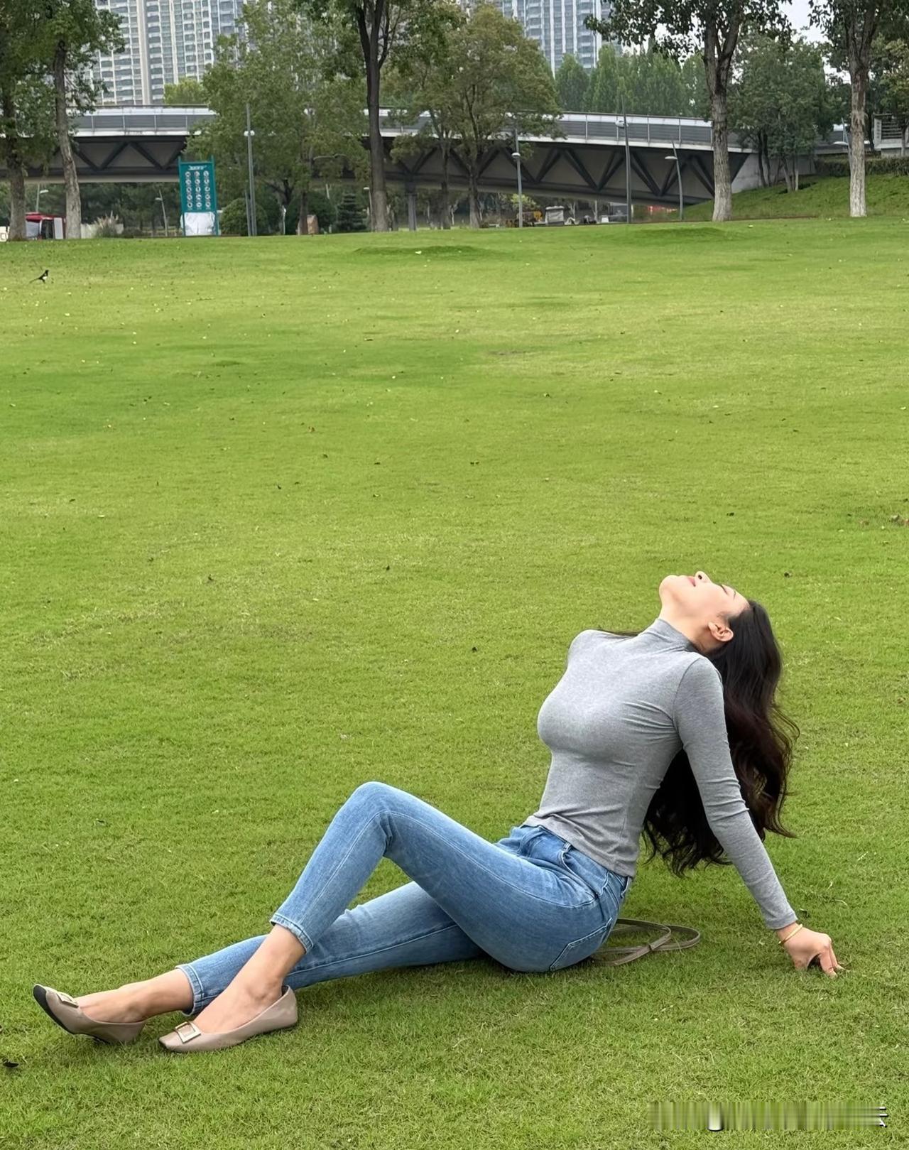 孕妇于公园中晒太阳,心情颇为舒畅。日常孕妇状态孕妈妈自拍晒好孕孕妈妈户外