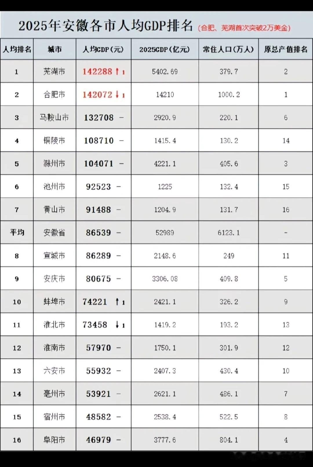 安徽只有芜湖和合肥达到发达城市标准,其余14市都不达标通常认为,人均GDP达到