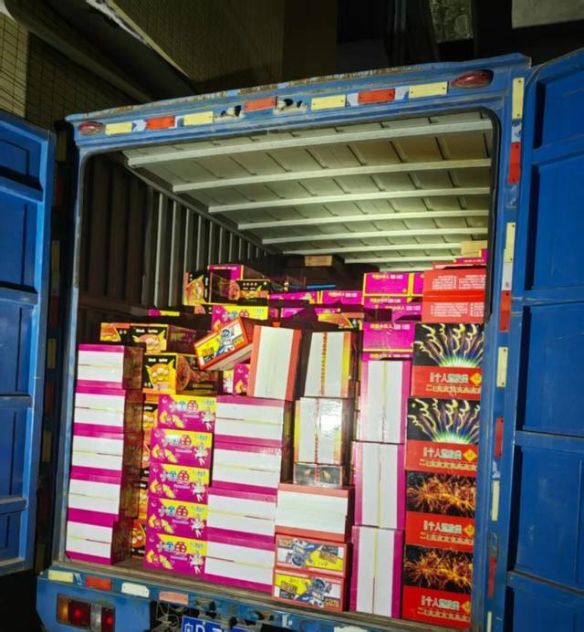 1月21日晚,花都警方在日常巡查中发现,秀全街道乐同村某地有货车正在违规装卸烟花爆竹。民警立即上前处置,当场控制周某、谭某、刘某三名嫌疑人,并顺藤摸瓜找到其背后的非法储存烟花爆竹窝点。经现场清点,共查获各类烟花1146件、爆竹527件、4寸礼花弹396发,涉案物品总重量达10.95吨。目前,周某、谭某、刘某均已被警方依法处理。