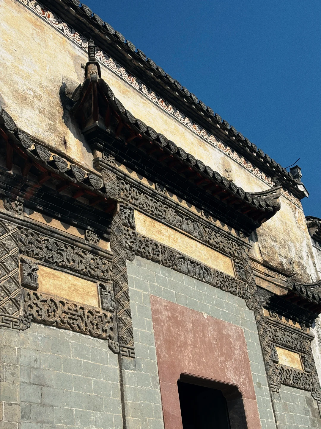 洪家大屋是典型徽派工艺:青砖小瓦、马头墙、天井采光、精美木作与砖雕;且并非单一建筑,是由四组清代宅院组成(门牌8/10/12/16号),总占地1200余平方米,均为二进二层砖木结构,坐北朝南。