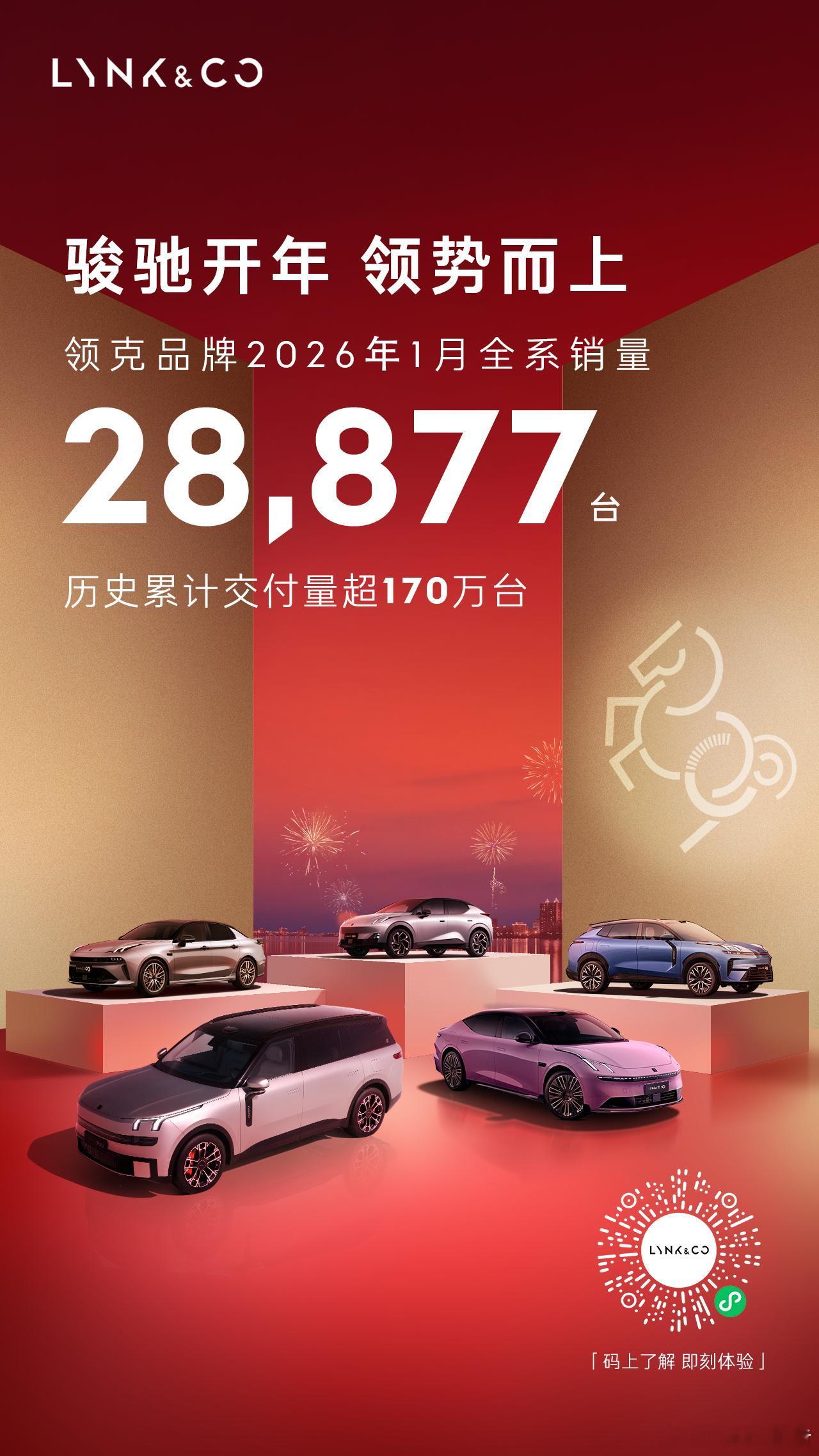 2026年1月,领克品牌全系销量28,877台。从第一款车上市至今,领克累计销量已超170万台。汽场全开领克1月销量28877台领克汽车