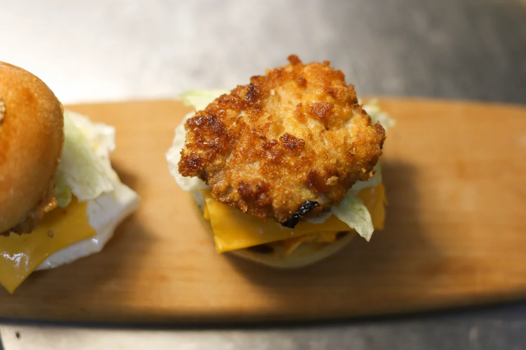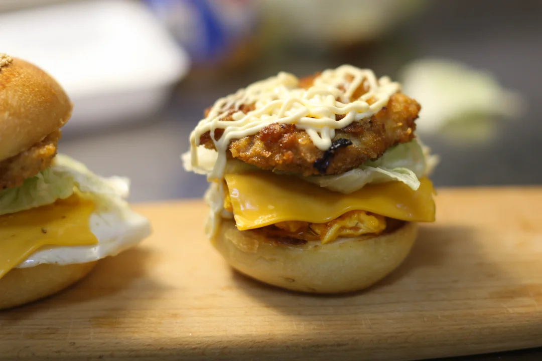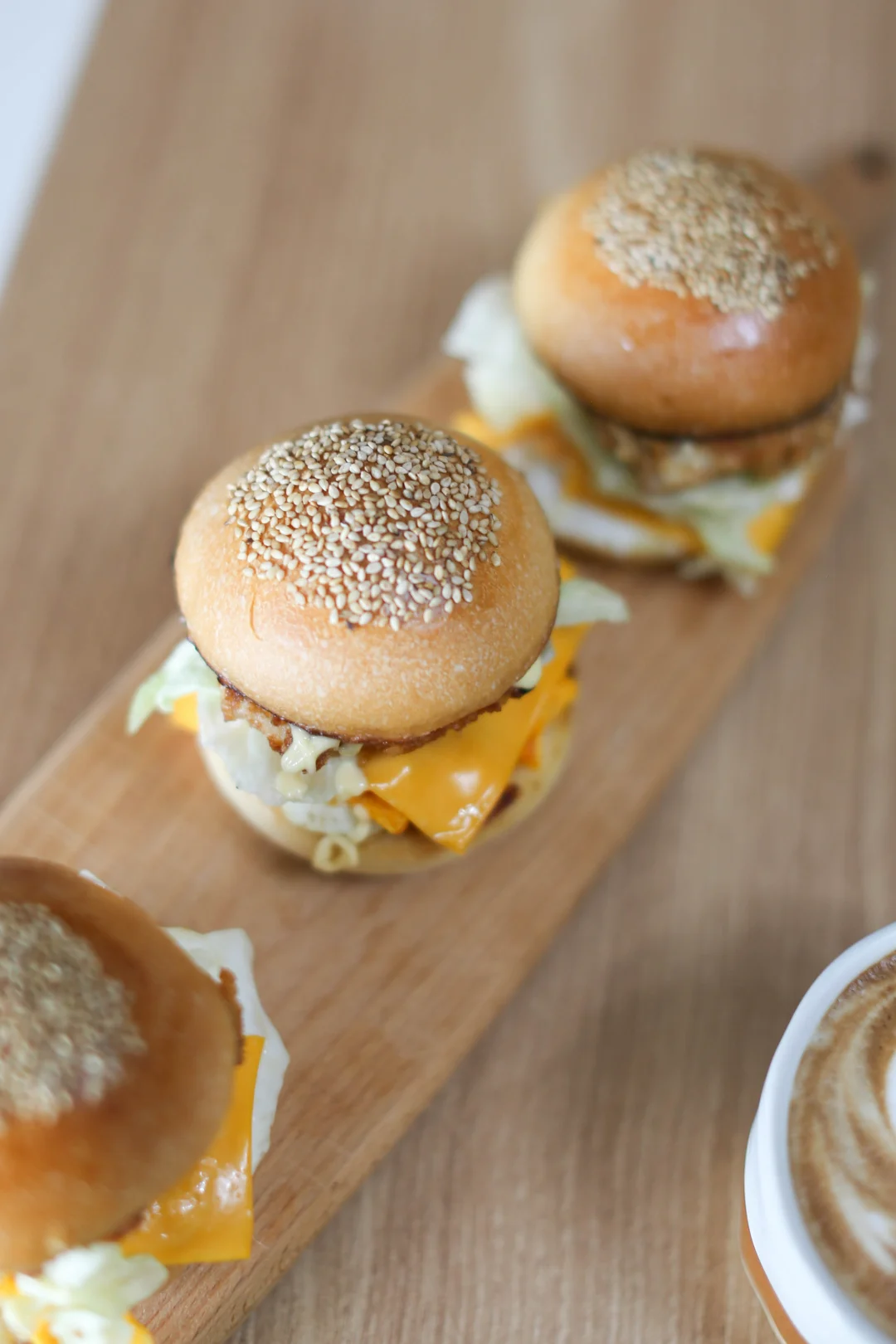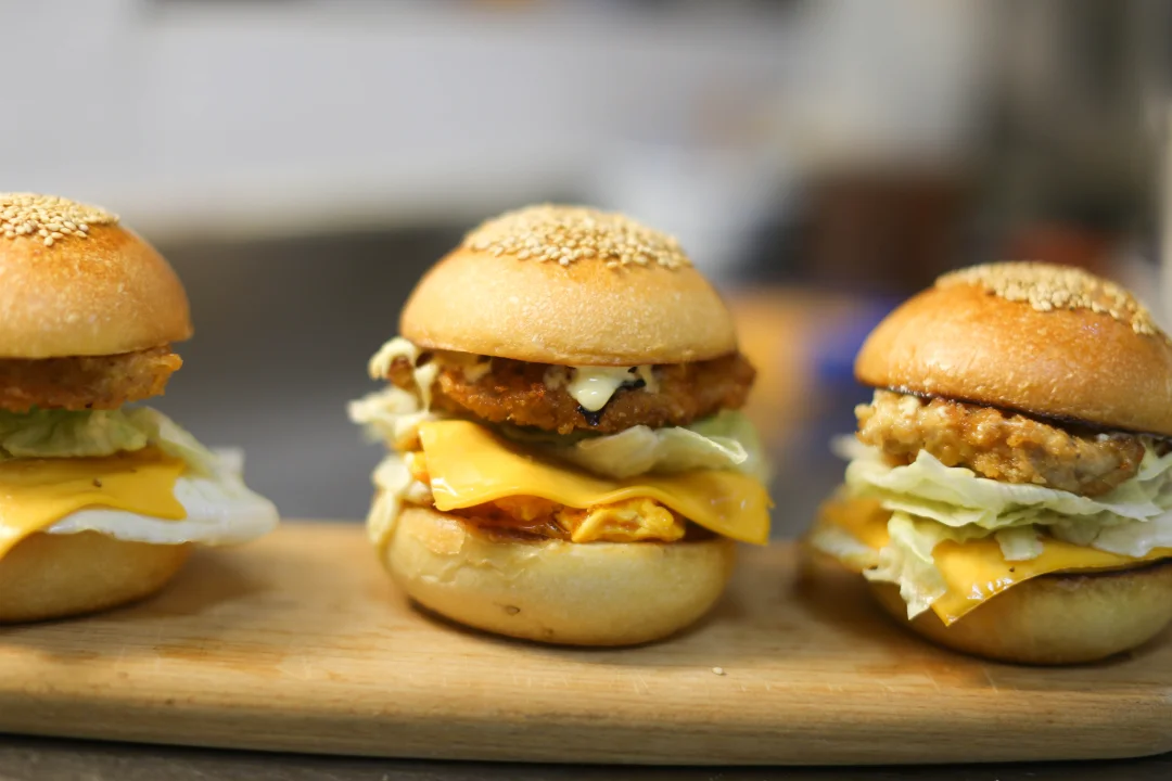 自制猪排汉堡包多汁松软,芝士咸香美味极了