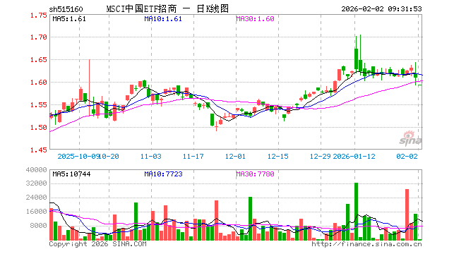 2月2日,MSCI中国ETF招商(515160)开盘跌0.93%,报1.593元。MSCI中国ETF招商(515160)重仓股方面,贵州茅台开盘涨1.71%,宁德时代涨2.00%,招商银行涨0.54%,工业富联跌1.56%,中国平安跌0.60%,紫金矿业跌8.15%,中际旭创跌2.16%,长江电力涨0.49%,农业银行涨0.15%,寒武纪跌0.79%。