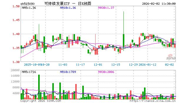 2月2日,截止午间收盘,可持续发展ETF(515090)涨0.15%,报1.363元,成交额8.59万元。可持续发展ETF(515090)重仓股方面,宁德时代截止午盘跌0.06%,贵州茅台涨2.64%,中国平安涨0.13%,中际旭创跌7.24%,紫金矿业跌6.78%,招商银行涨0.72%,美的集团涨0.49%,兴业银行涨1.98%,长江电力跌0.27%,恒瑞医药跌1.50%。
