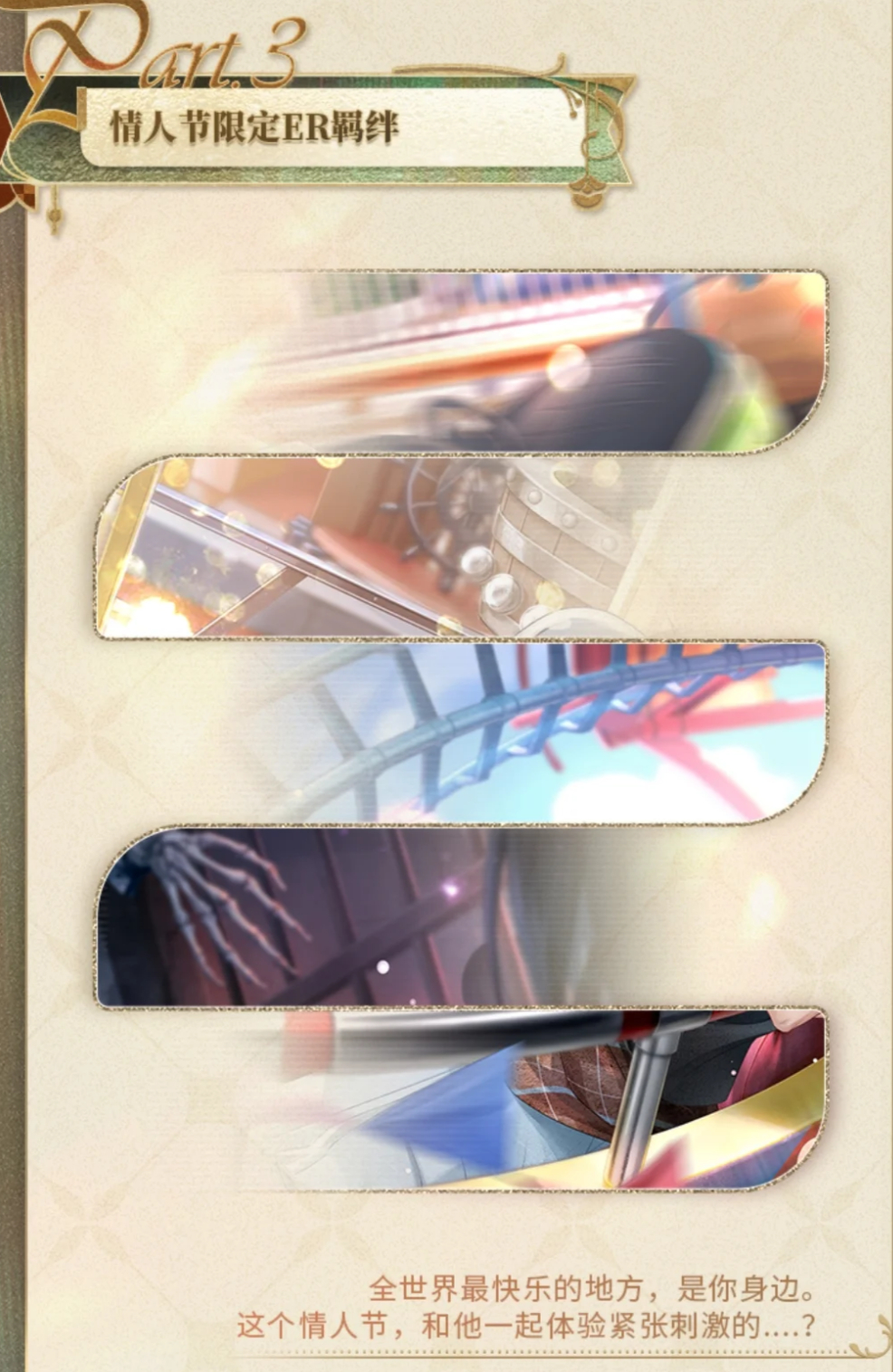 恋与制作人谈个恋爱吧恋与制作人心动乐园\日常感/\日常感/\日常感/得了一种看到日常感卡面就很幸福的感觉。谁懂每次情人节看到卡面都有种简简单单冒粉红色泡泡的开心,有种一下子喧嚣的声音都远去了,只有和爱人一起投入到一件生活里的小事的感觉~!好喜欢这种生活感拉满的卡!在阳光明媚的春天和他们一起去游乐园,一起在阳光明媚的日子因为爱而欢笑吧!