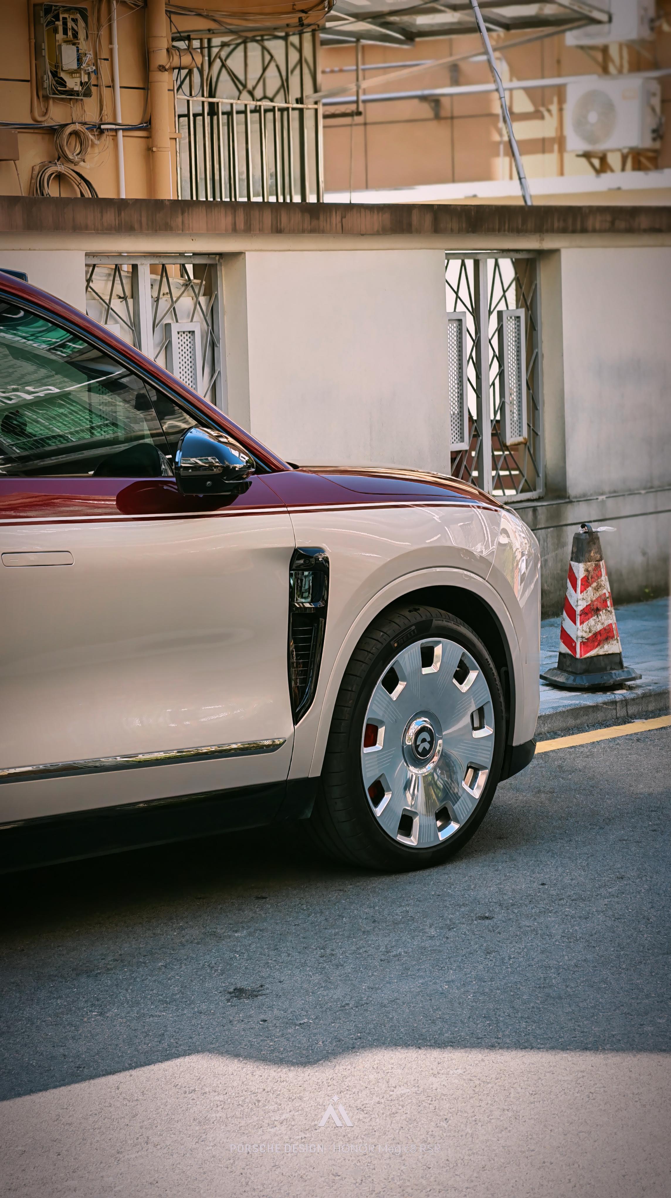 哎?新的蔚来ES8为啥显得轮子有点小……凑近了一看265/45R21,尺寸其实很