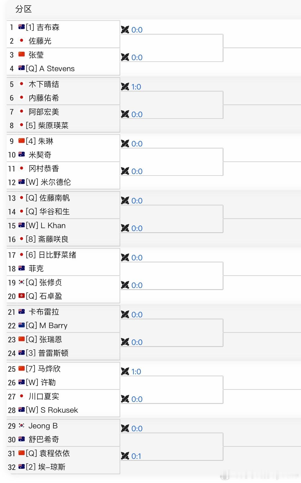 🇦🇺布里斯班W75签表🇨🇳朱琳vs🇦🇺米契奇🇨🇳马烨欣vs🇦🇺许勒[WC]🇨🇳张莹vs🇦🇺Stevens[Q]