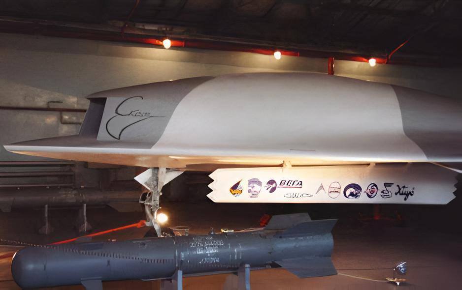 “鳐鱼”无人机采用“无尾飞翼”布局,十分强调隐身性能,其机翼前、后缘和机身边缘采用平行设计,将高强度雷达反射波集中到与机身前、后缘垂直的四个方向上;进气道位于机身上方接近机头部位,采用单进气口“叉式”进气,两个分叉的进气道由一个垂直隔膜分开,以防止入射雷达波直接照射发动机风扇的迎风面后形成强反射源;另外,机腹武器舱门和机身所有口盖边缘也被设计成锯齿状。“鳐鱼”无人机拥有2个内置武器弹舱,能够携带像Kh-31反舰导弹(弹体长度达4.7米)这样的大型精确打击武器,以及KAB-500精确制导炸弹和Kh-31P反辐射导弹等武器。