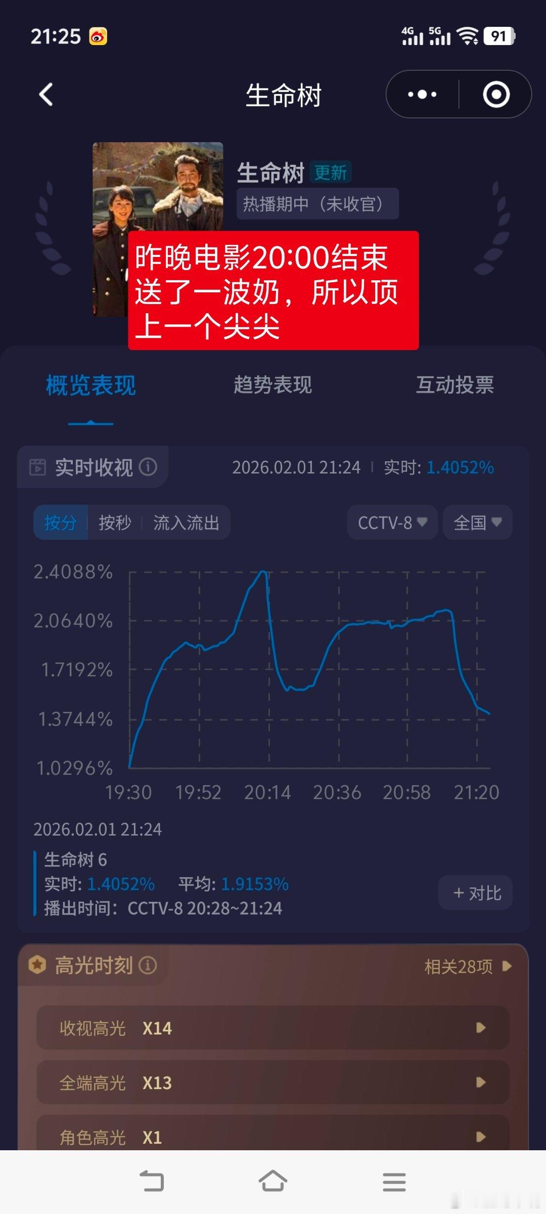 我看了明天🐏6节目单,可以肯定明天第一集峰值会涨,双集平均会涨!