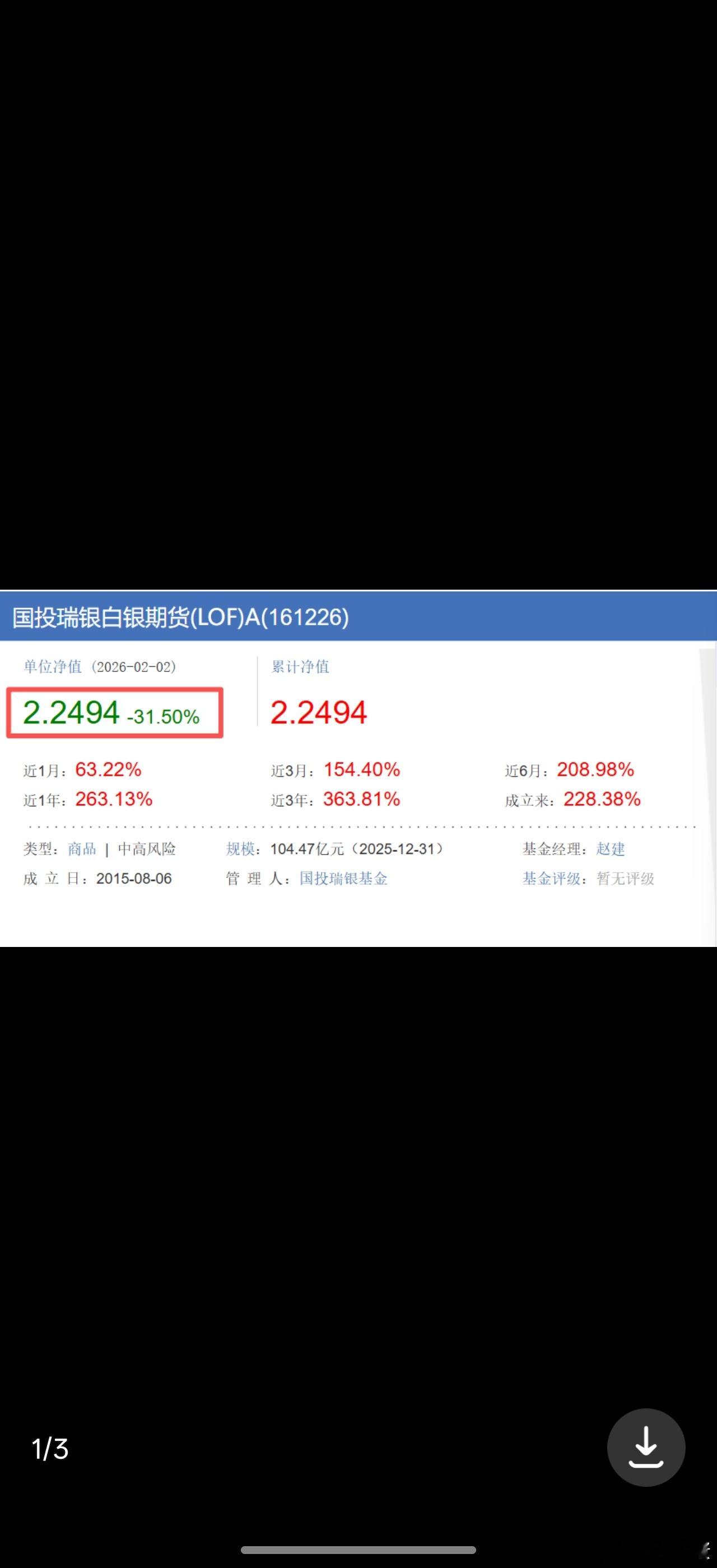 国投白银直接根据期货调整基金净值,2.2494了。。。一天-31.5%看看二级市场,还有4.722,一个跌停结果溢价飙升到109%
