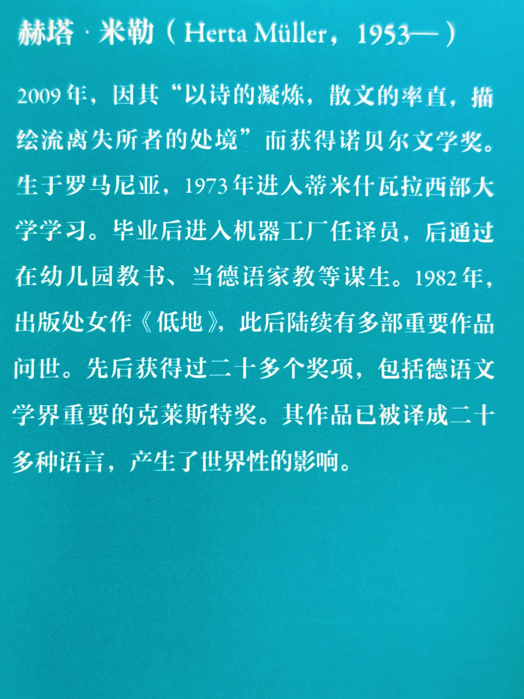 谁能想到,写下这句话的2009年诺贝尔文学奖得主赫塔·米勒,曾在罗马尼亚的闭塞村庄里,被贫穷、压抑和政zhi高压裹挟,连呼吸都带着窒息感。