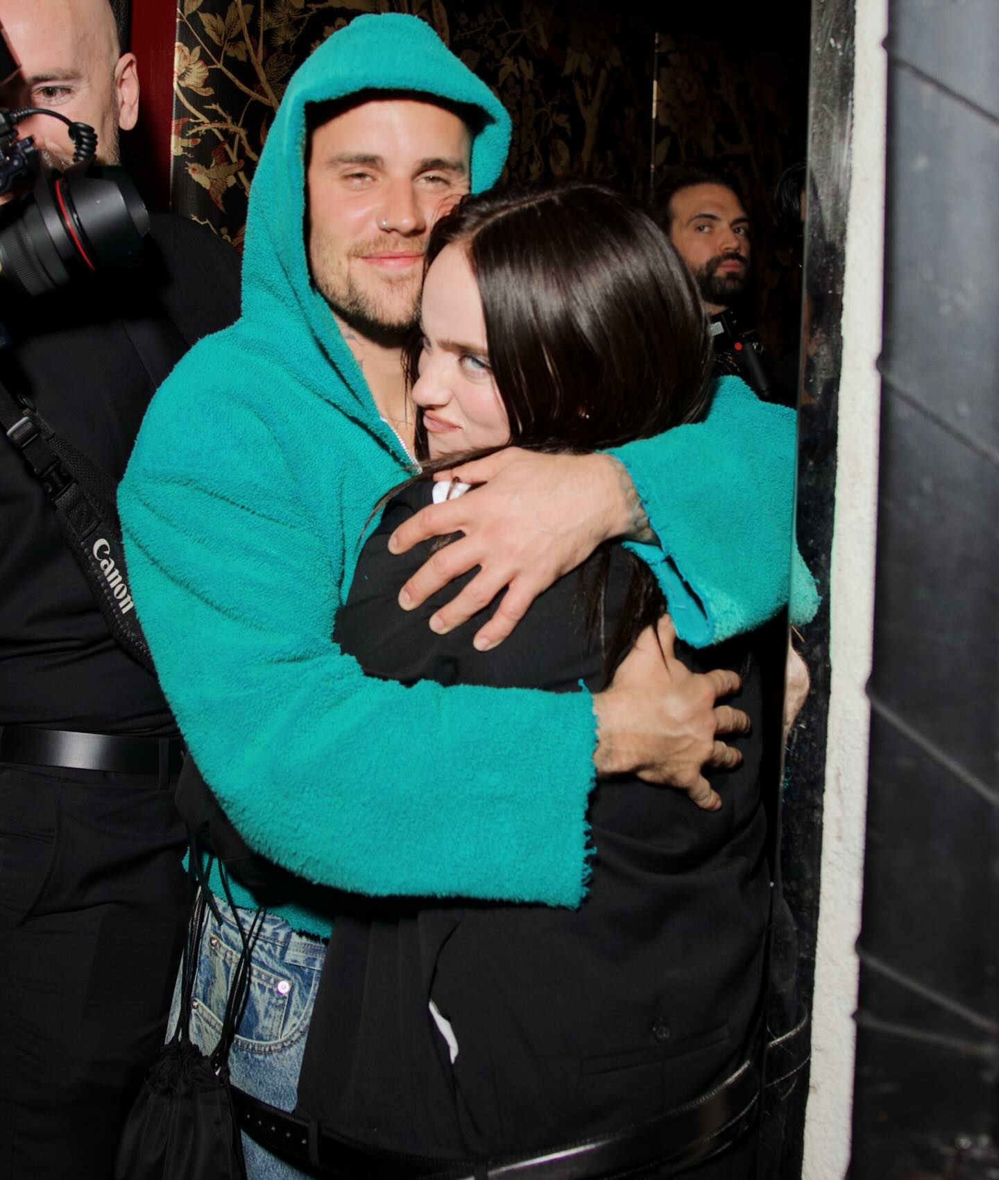 可爱哈哈哈~~Justin Bieber贾斯汀比伯在格莱美庆功派对上拥抱铁粉碧梨Billie Eilish!!!