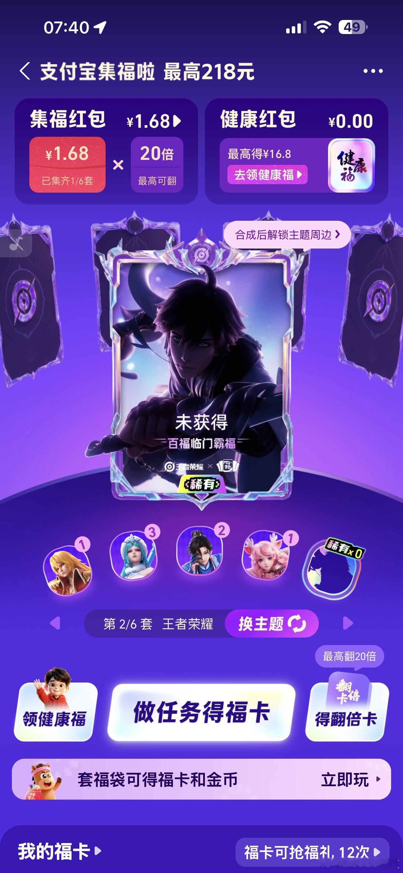 感觉今年的支付宝集五福没啥热度呀,一共能合成6套,第一套很好集,预约了早鸟票