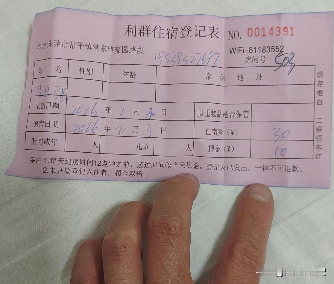 今儿到东莞东站办事,到地儿都挺晚了,打算找个地儿住下。瞅见附近的利群旅馆,想着先去问问价。老板说 20 元的房间都住满了,只剩 30 元的。这价格对我来说还算能接受,毕竟出门在外,能省一点是一点。 进了房间,整体感觉就是经济实惠型的。不过这卫生条件确实不咋滴,地板看着有点脏,墙角还有灰尘。好在床单和被套看着还可以,没有明显的污渍,这让我心里稍微舒坦点。出门嘛,不能要求太高,有个地儿能安稳睡一觉就行。 东莞虎门火车站