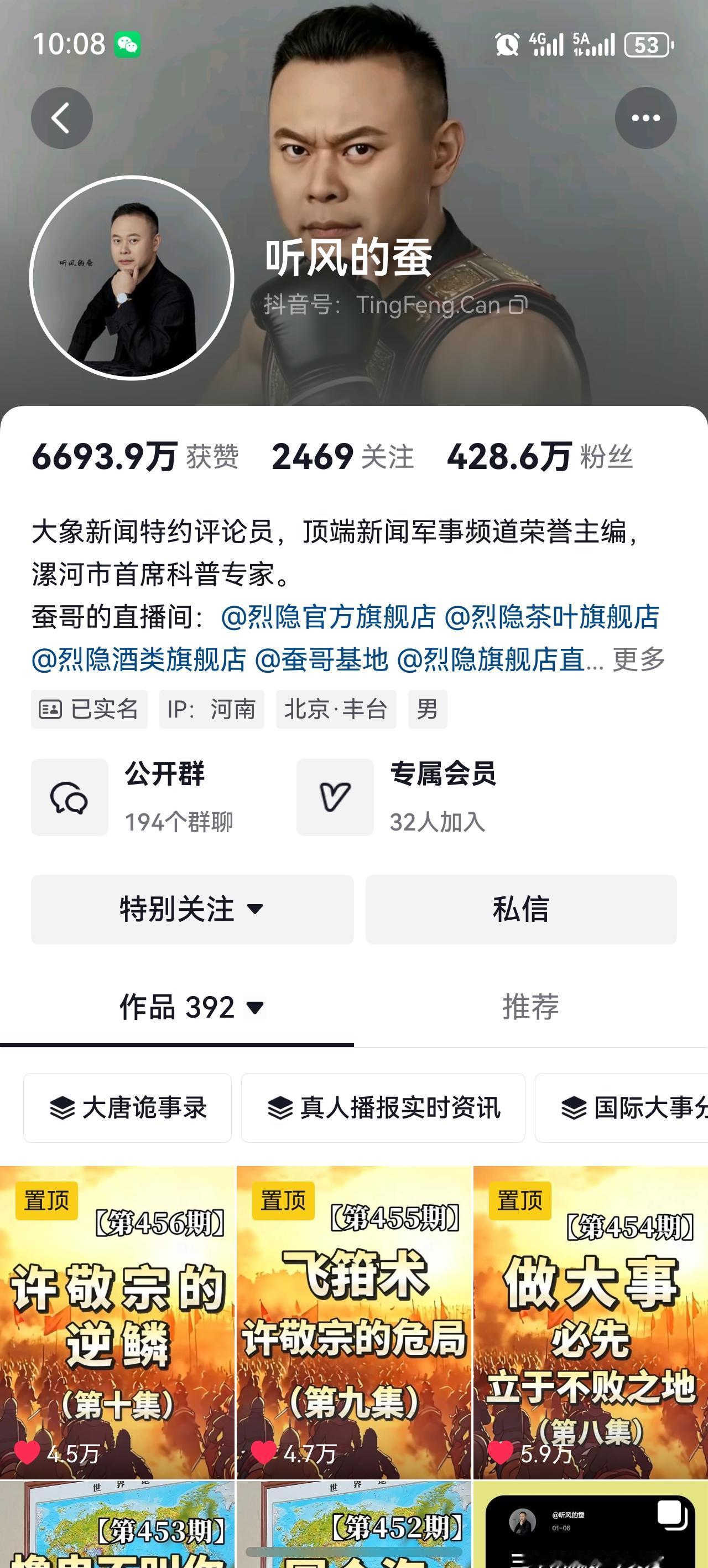 听风的蚕抖音号怎么了,突然大量掉粉, 截至现在,已经从近两千万粉丝掉到400来万