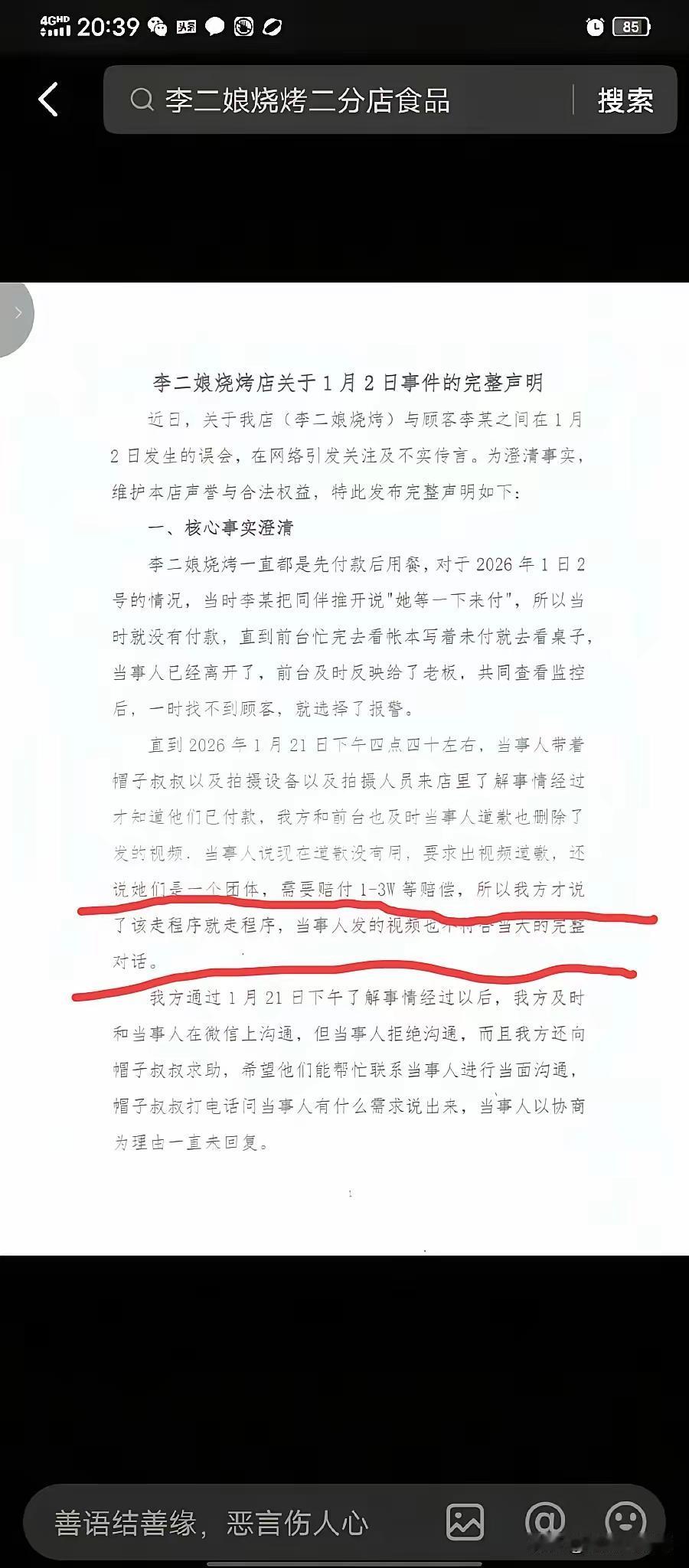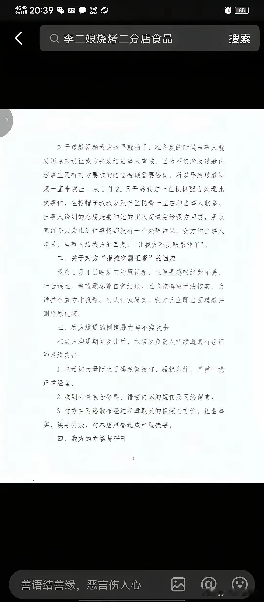 当着警 察放狠话:“绝不道歉”的文山烧烤店老板娘,终于全网公开道歉了! 文山老板娘连发两条视频诬陷顾客吃“霸王餐”,后续来了。 不过,这感觉也不是真心道歉。 这是生意受到影响,被五个被她伤害的顾客起诉,顶不住压力,不得不妥协。 不过,这泼天流量,算是被老板娘玩明白了。 发布视频,委屈向网友“控诉”,博取同情,引来网友同情。 顾客维权,她嚣张拒绝“道歉”,引来第二波流量。 最后,反转解释:不是故意的不道歉,就是认为顾客没付钱。屈服法律和生意受影响,不得不道歉。这也是一波流量。 毕竟,黑红也是红。 网友最惨,成为流量的一环。 对此事,你怎么看?
