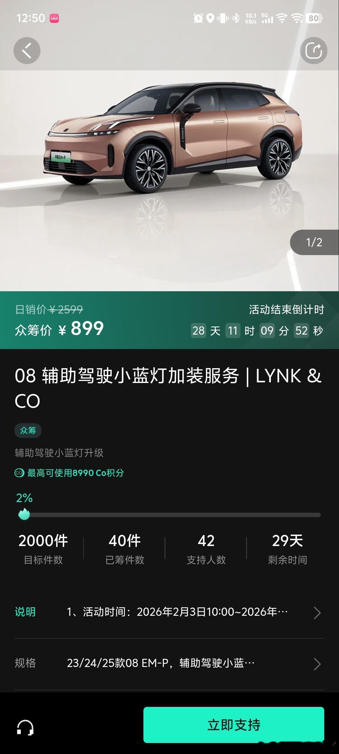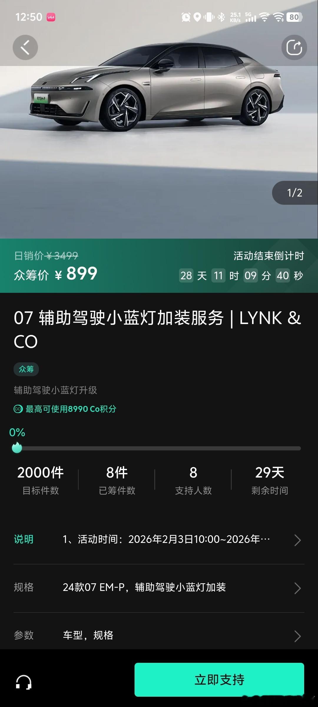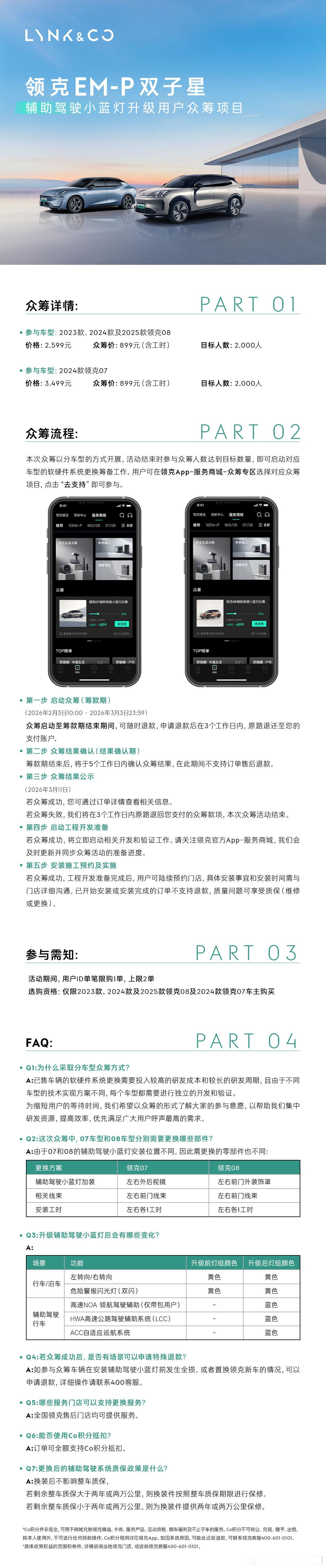 好东西要让更多人知道。领克商城今天上架了老款领克07 和领克08 的辅助驾驶小蓝灯加装众筹,只需要899(含工时)。