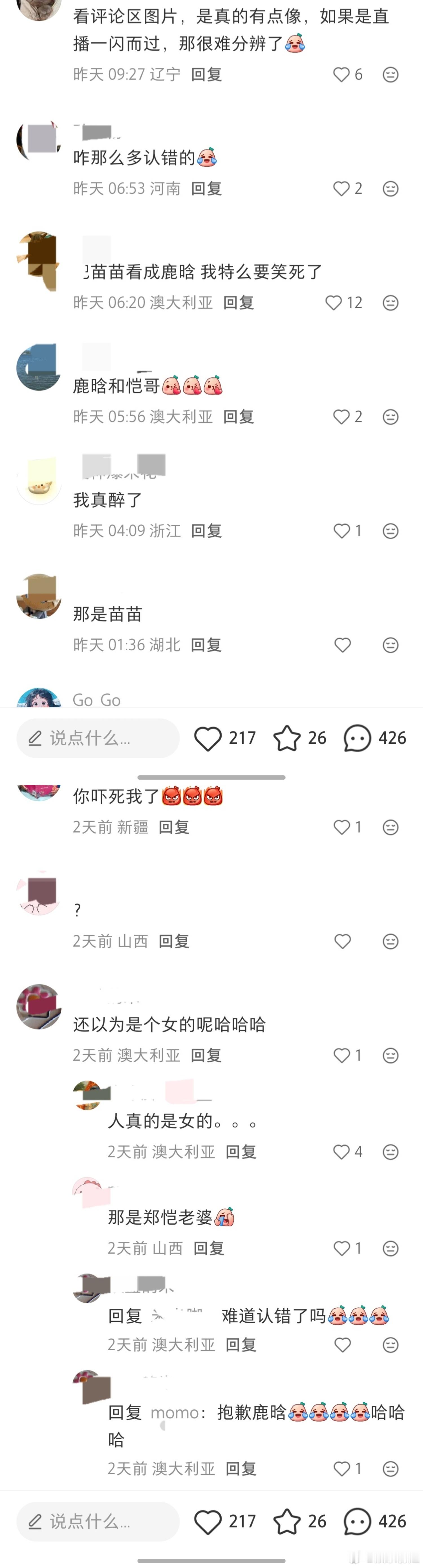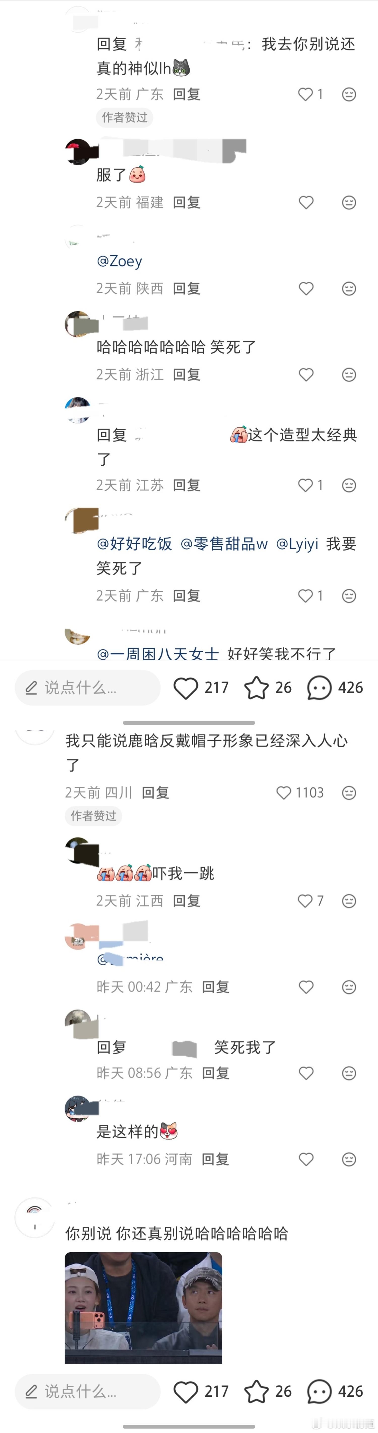郑恺回应鹿晗粉丝 笑死了!郑恺和苗苗澳网直播画面被网友看到,网友把苗苗认成鹿晗,底下一堆人认错。结果郑恺估计看到这帖子了,正好有网友问他旁边是谁,就开玩笑说是鹿晗,结果被鹿晗粉丝冲了。我真笑死了,坏在网速太快了!哈哈哈哈哈哈!但鹿晗和苗苗乍一眼还真像啊!
