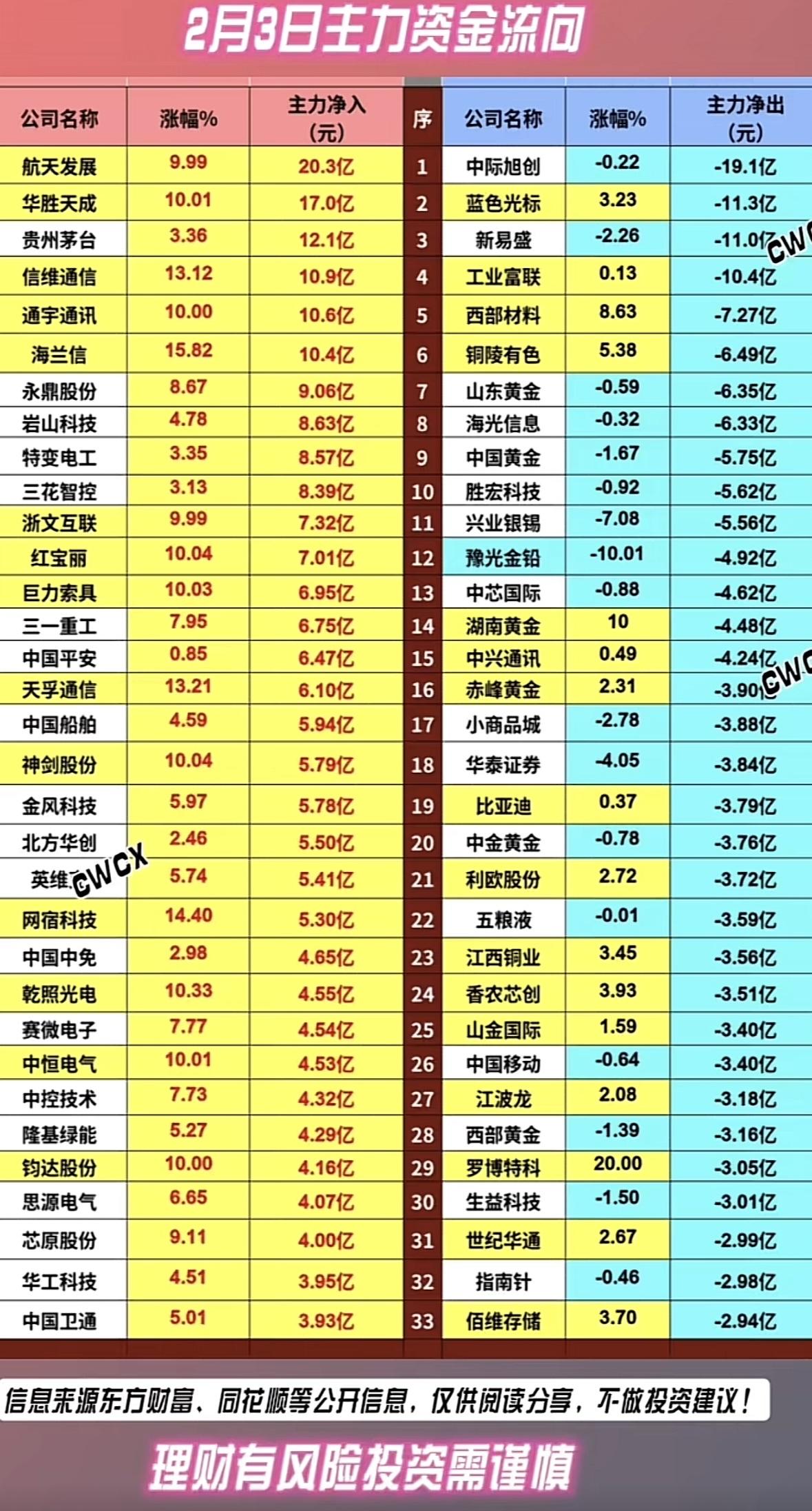 2月2日主力资金流入流出TOP30,快来看看谁在涨谁在跌!💰📈📉主力资