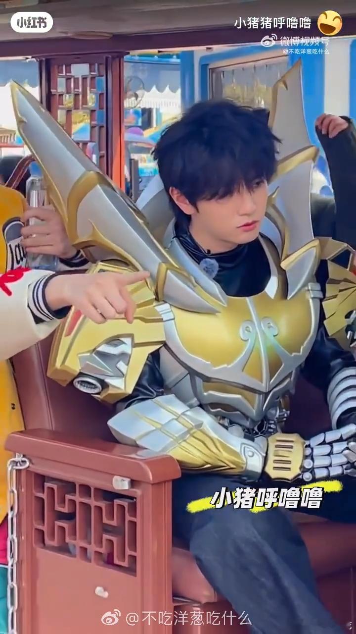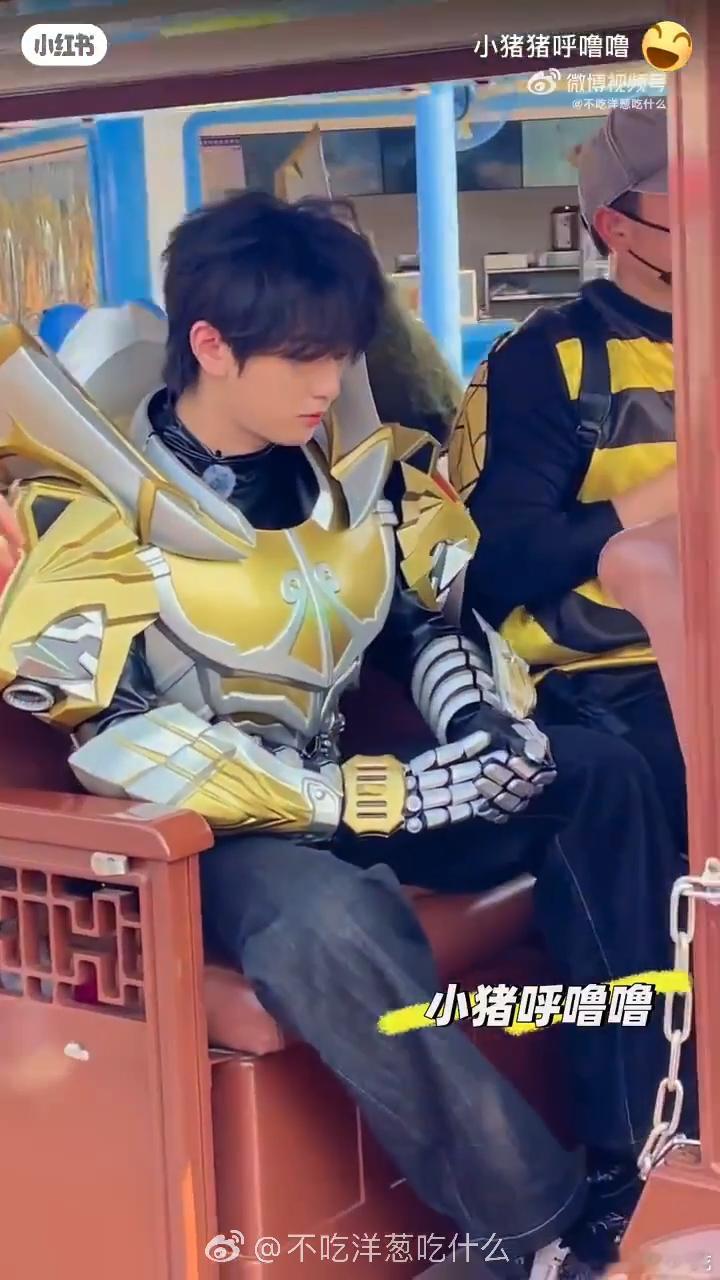 穆祉丞穿着铠甲勇士服坐观光车穆祉丞穿铠甲勇士服坐观光车 变身成功的穆穆