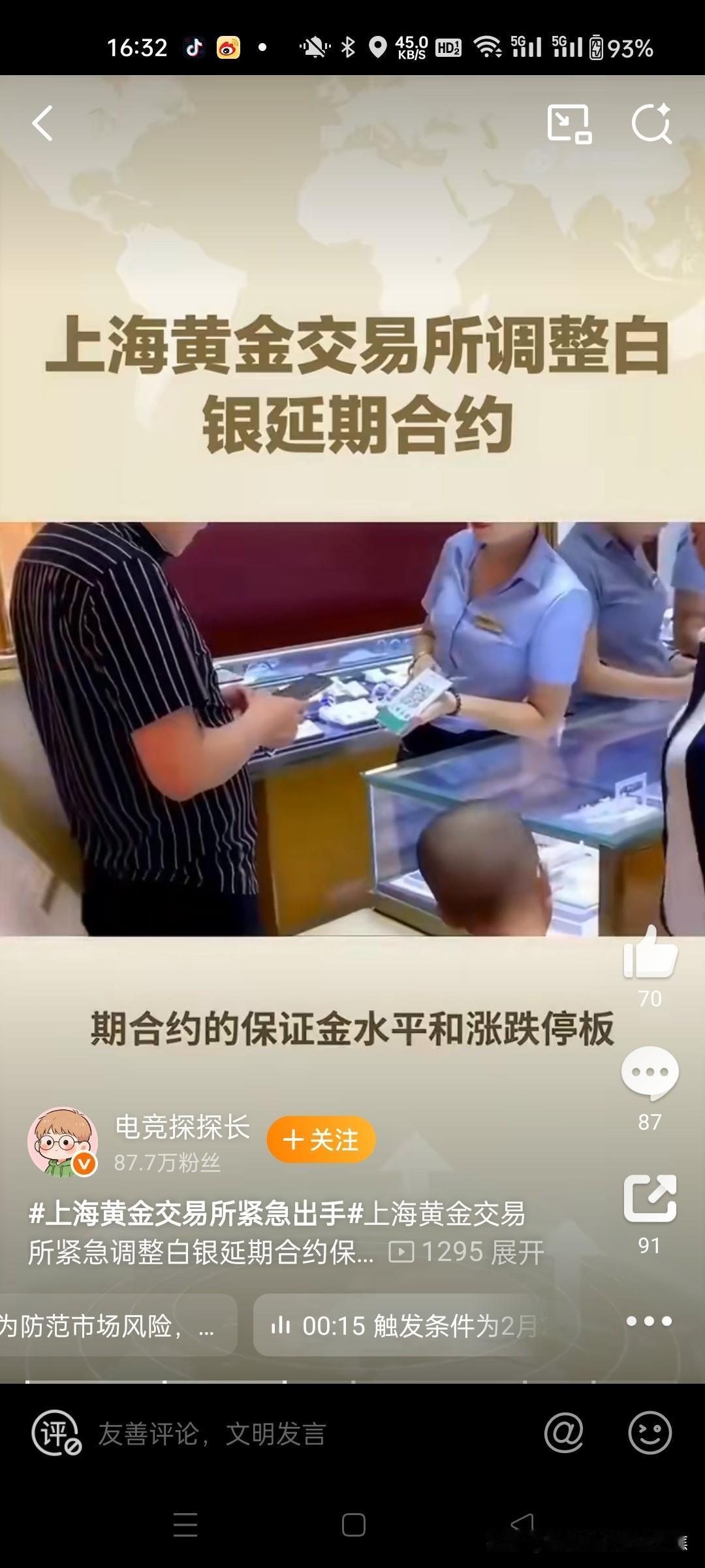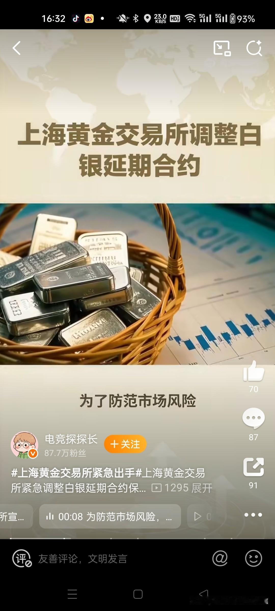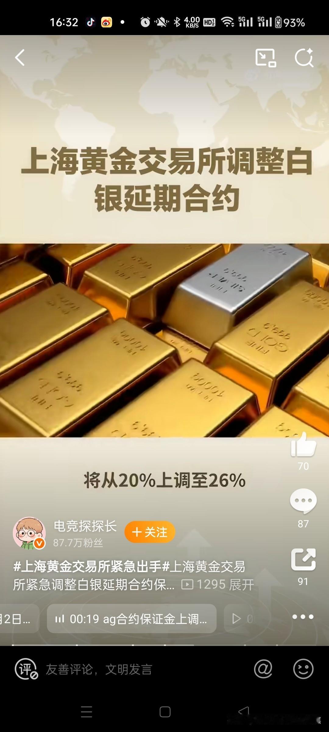 2026年1月末2月初,黄金白银期货过山车行情,多少空头多头被斩杀!极端行情下的多空双杀。暴跌幅度创历史纪录。交易所想出来很多招数追加保证金,调整涨跌幅,停牌,不知道是好事还是坏事,平仓了就血本无归了! 让历史告诉未来,经历过才会知道。历史上首次。你遇到了,见证了奇迹。 近期黄金白银市场经历史诗级震荡,单日暴跌导致大量杠杆交易者爆仓血本无归,交易所紧急出台追加保证金、扩大涨跌幅等风控措施引发争议,其利弊需从市场稳定与个体风险两端分析。 一、极端行情下的多空双杀 暴跌幅度创历史纪录 现货白银单日闪崩36%(创46年来最大跌幅),黄金跌超12%,触发高杠杆多头连环爆仓。例如深圳投资者40倍杠杆炒银单日清零,期货公司因跌停无法平仓致数亿级穿仓。@科技教主-娜...39 空头同样遭反杀:白银此前暴涨170%,部分空头因逼仓被迫高位平仓亏损离场。@米米妈育儿3344 爆仓根源:杠杆与流动性枯竭 白银期货保证金比例仅19%-20%,但单日波动超30%,10倍杠杆即可导致穿仓。4355 市场恐慌时流动性消失,止损单与程序化交易形成“下跌→抛售→加速下跌”死亡螺旋。@老板联播55米米妈育儿 二、交易所风控手段的争议性 紧急干预措施 动态调整规则:上海黄金交易所设定条件性提保(若单边跌停,保证金从20%→26%,涨跌幅19%→25%),芝商所月内四次提保至2.5万美元/手。@南方日报255 限制交易:对违规账户限制开仓、出金,白银LOF基金因溢价停牌。1625 “救命或催命”的双面性 积极面:避免系统性崩盘。提保强化抗风险能力,扩涨跌停板防止流动性枯竭踩踏,如未触发单边市则维持原规则。@电竞探探长4656 消极面:加速散户爆仓。保证金上调后,资金不足的多头直接被强平,空头亦因反弹被迫离场。@张嘉森杠杆...3052电竞探探长 三、对普通投资者的启示 慎用杠杆:高杠杆是“绞肉机”,5倍杠杆遇7%波动即可爆仓,实物交割需求(如3月COMEX或现违约)更放大风险。@黑夜之睛滚雪...1331 理性配置策略 黄金占流动资产≤10%,白银≤3%,优先选银行金条、低费率ETF。@广东广播电视...1325 避免追涨杀跌,暴跌后勿盲目抄底(易成“半山腰接刀”)。@第一财经日报12 长期逻辑未变:央行购金、去美元化、光伏用银需求仍支撑中长期价格,但短期高波动将持续。@新闻晨报1142广东广播电视台第一财经日报新闻晨报 结语:规则干预是“必要之恶” 交易所措施本质是平衡市场稳定与个体风险的无奈之举。对散户而言,远离杠杆、控制仓位才能避免成为规则调整下的牺牲品。历史反复证明:在资本主导的游戏中,活下来比赚快钱更重要。81044黄金白银价格 白银价格疯涨 白银价格疯涨 白银市场行情 白银价格 白银价格行情 白银趋势 白银追跌 白银金价