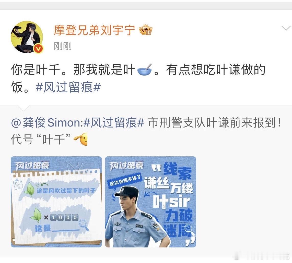 刘宇宁转发宣传龚俊风过留痕刘宇宁转发龚俊新剧刘宇宁做事好体面 为风过留痕献唱OS