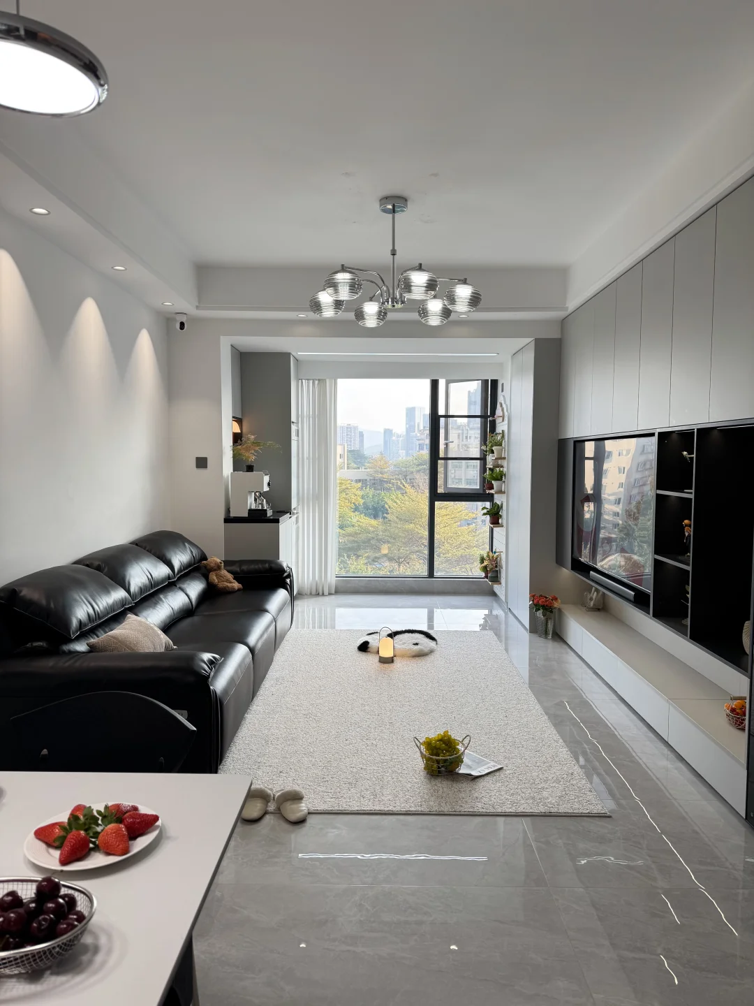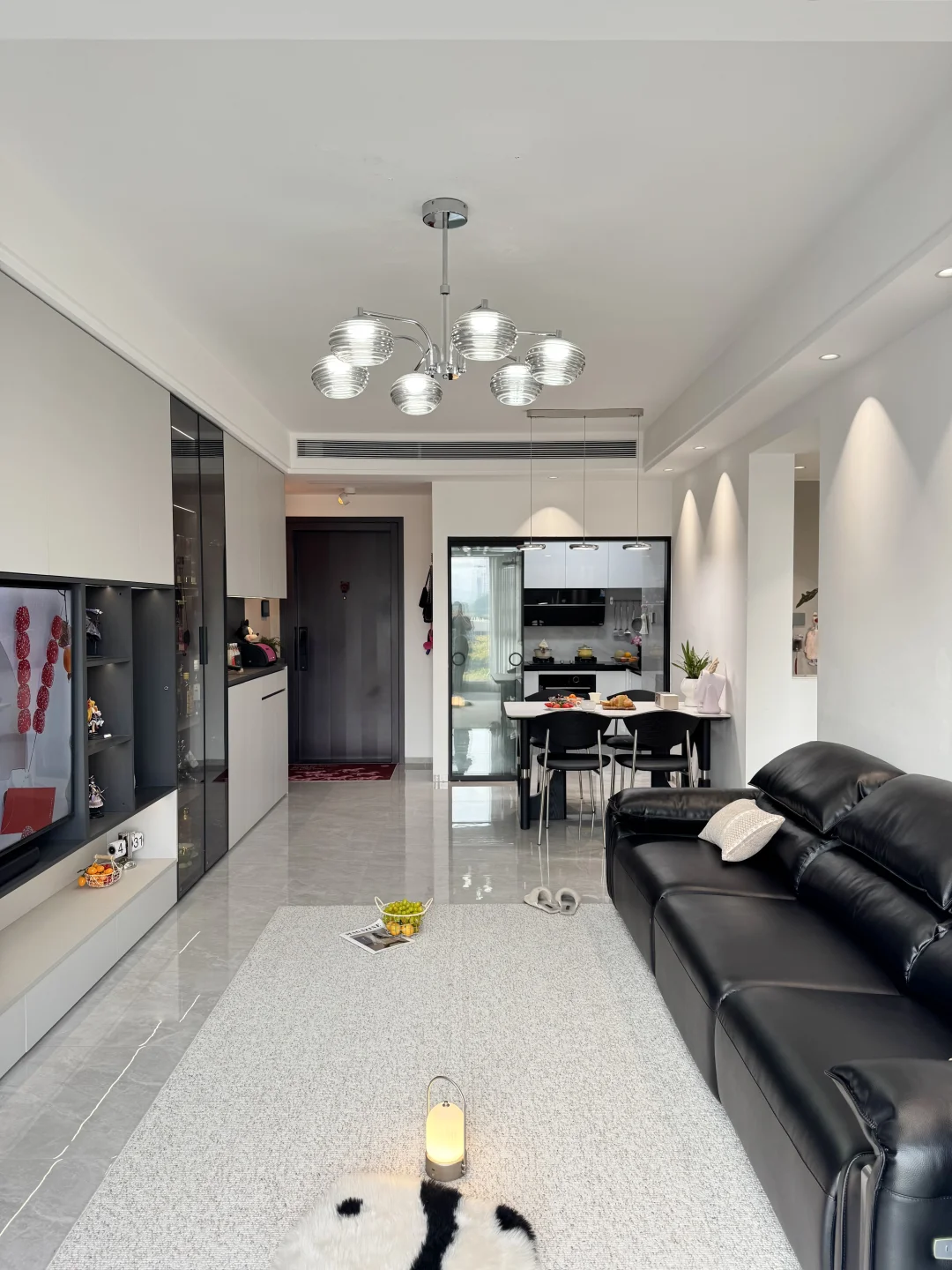客餐厅一体的边户,整体装修走的是黑灰白现代风~
