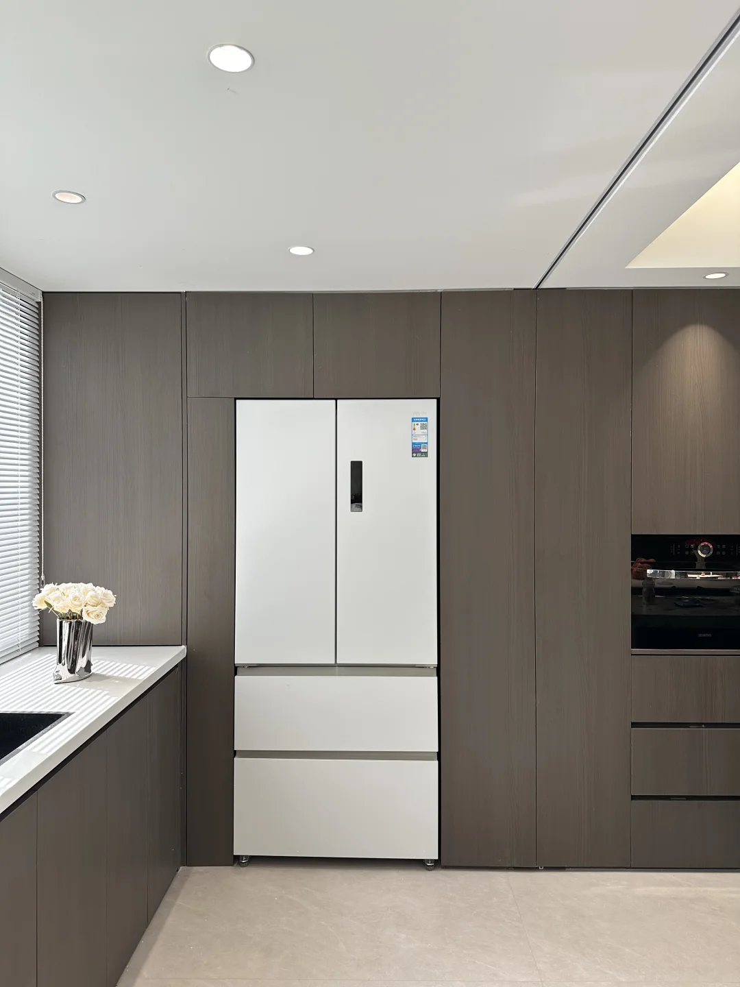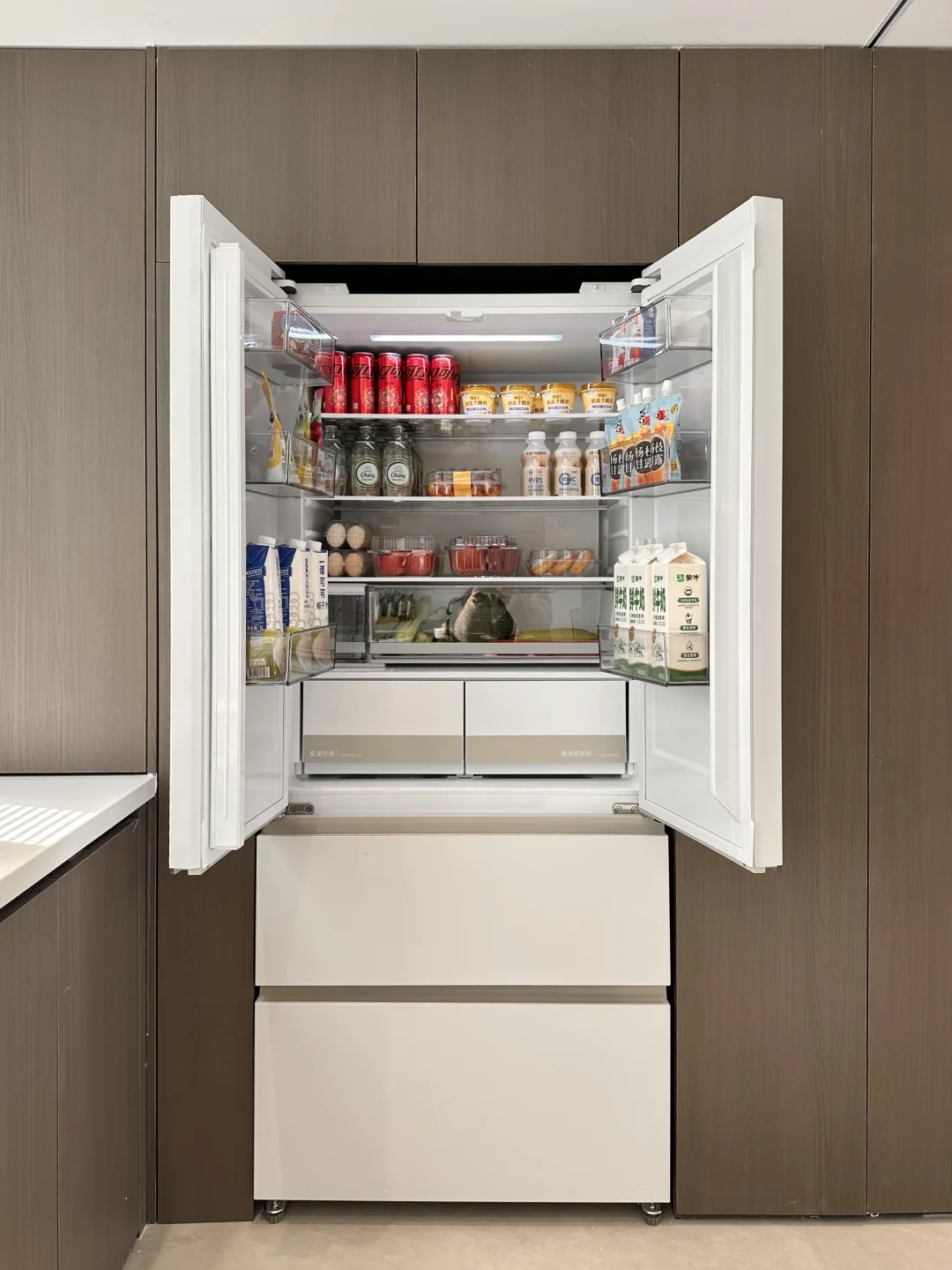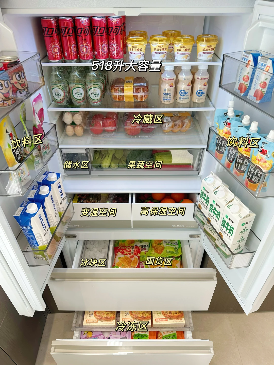 ⭐️机身只有60cm厚,能和我的橱柜完全平齐嵌入,侧面几乎不留缝,远看过去像隐形的一样。518L的大容量,对我家有新成员到来需要囤货的家庭太合适了✌️