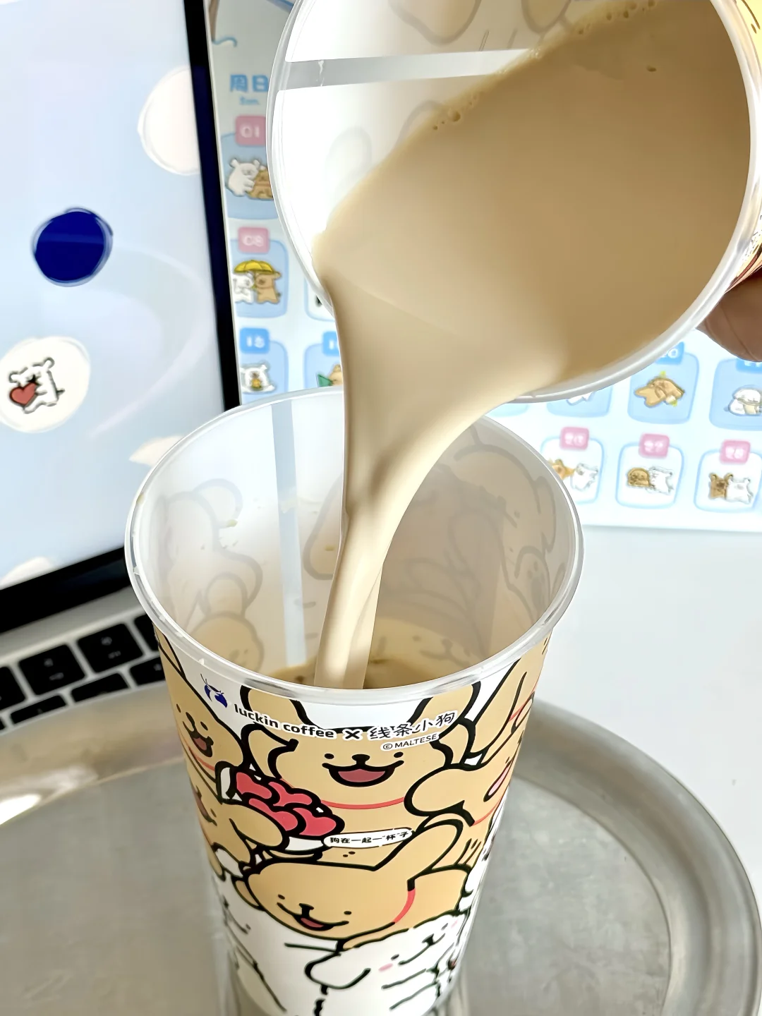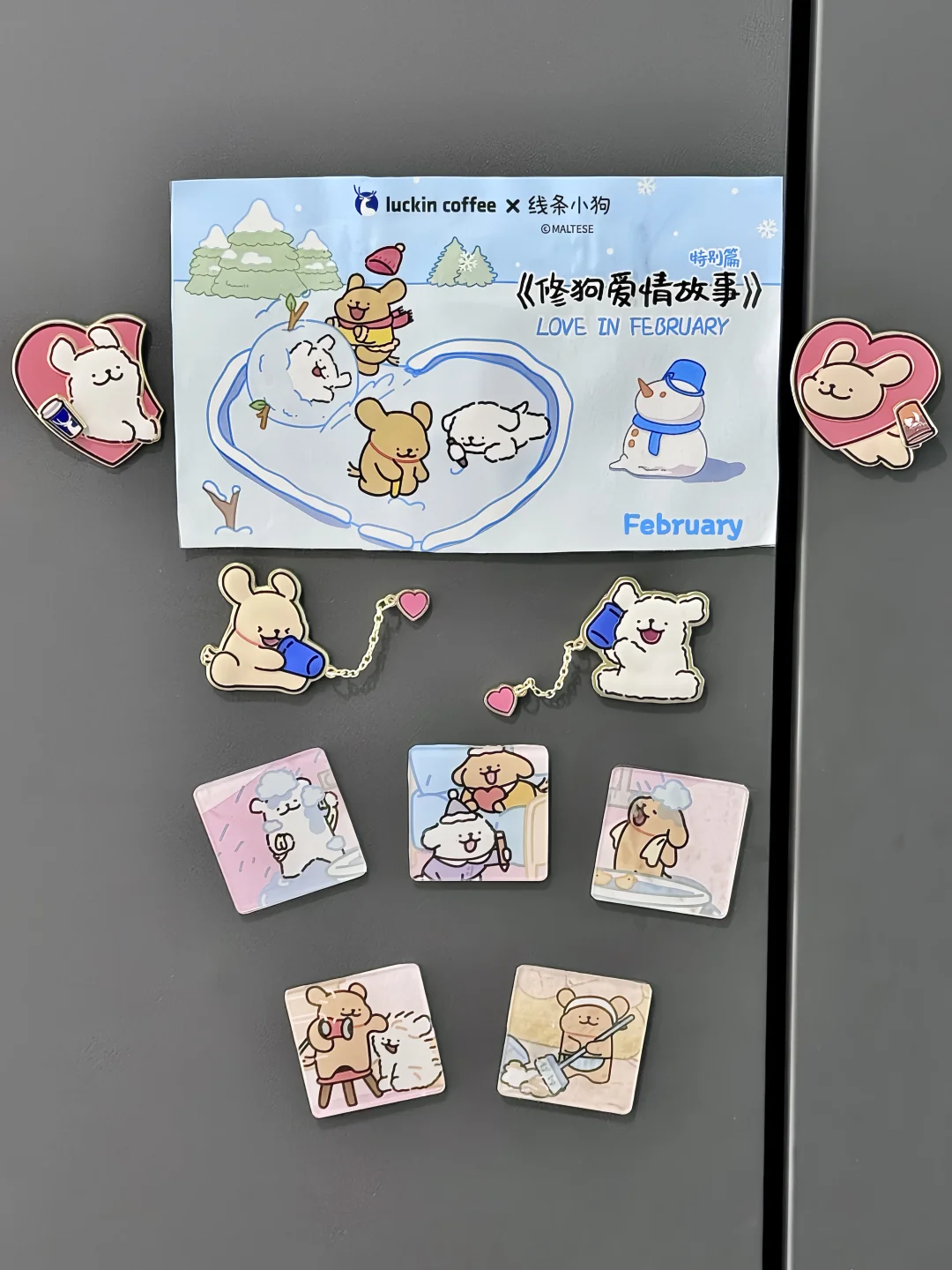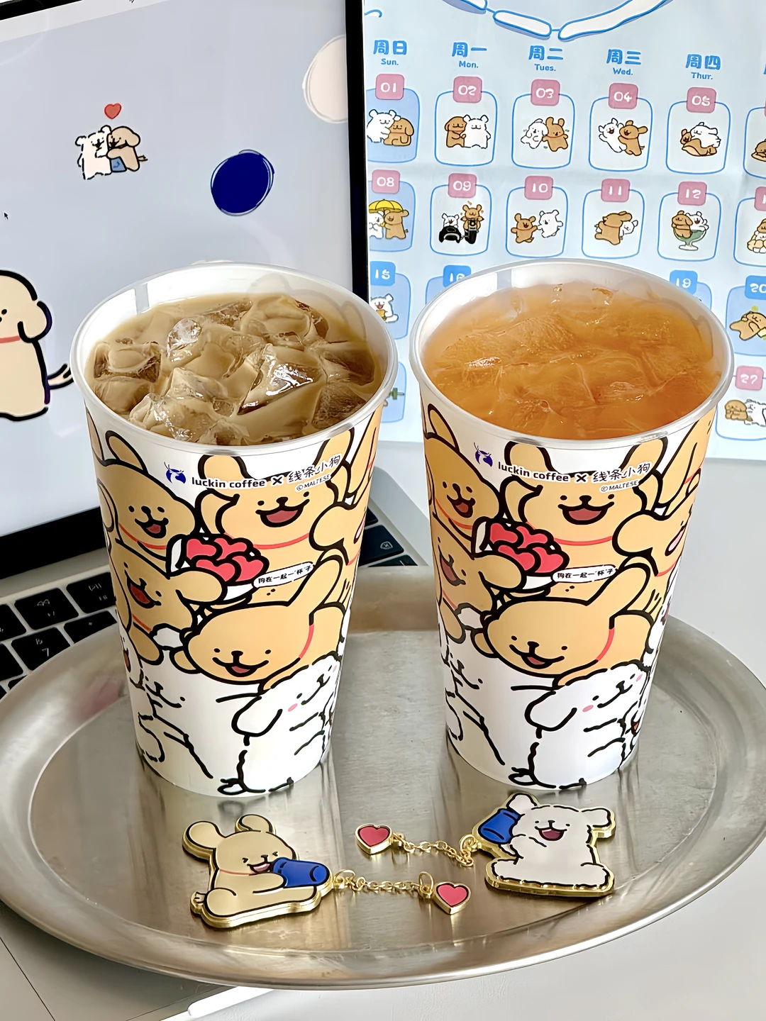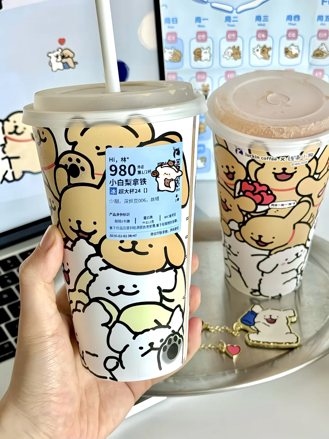 我要疯狂给瑞幸×线条小狗周边打call! 这周边也太太太可爱了, 冰箱贴、磁吸徽章,贴纸还有捏捏!! 袋子也很漂亮,蓝色款还是日历袋, 简单改造下就是二月日历不就有了, 随便贴画框或者冰箱都好好看!!! - 立春必喝小白梨拿铁终于回归了!! 推荐深烘➕冰➕少甜➕超大杯 淡淡的梨香跟深烘的醇香混合得刚刚好, 回甘还有曼妙栀子花香, 满嘴芬芳,清甜好喝! 记得加3元升超大杯,味道不变喝起来更爽!!! 好柿成双果茶也不错, 推荐冰➕不另外加糖➕超大杯 喝起来就是很真实的柿子味搭配茉莉花茶, 柿子果碎超丰富,柿子脑袋应该会超爱!!