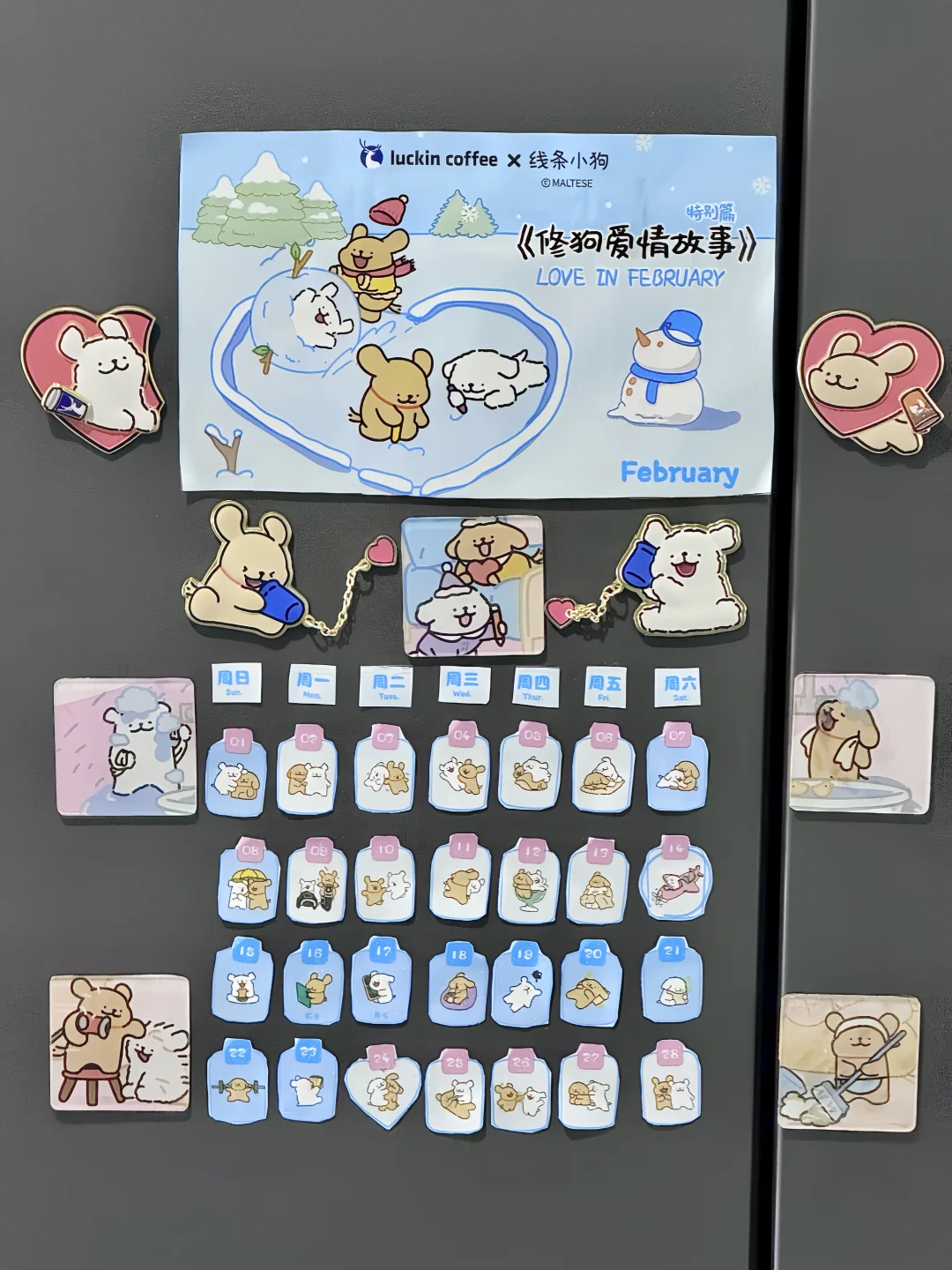 喝完瑞幸×线条小狗袋子不要扔!!DIY日历!
