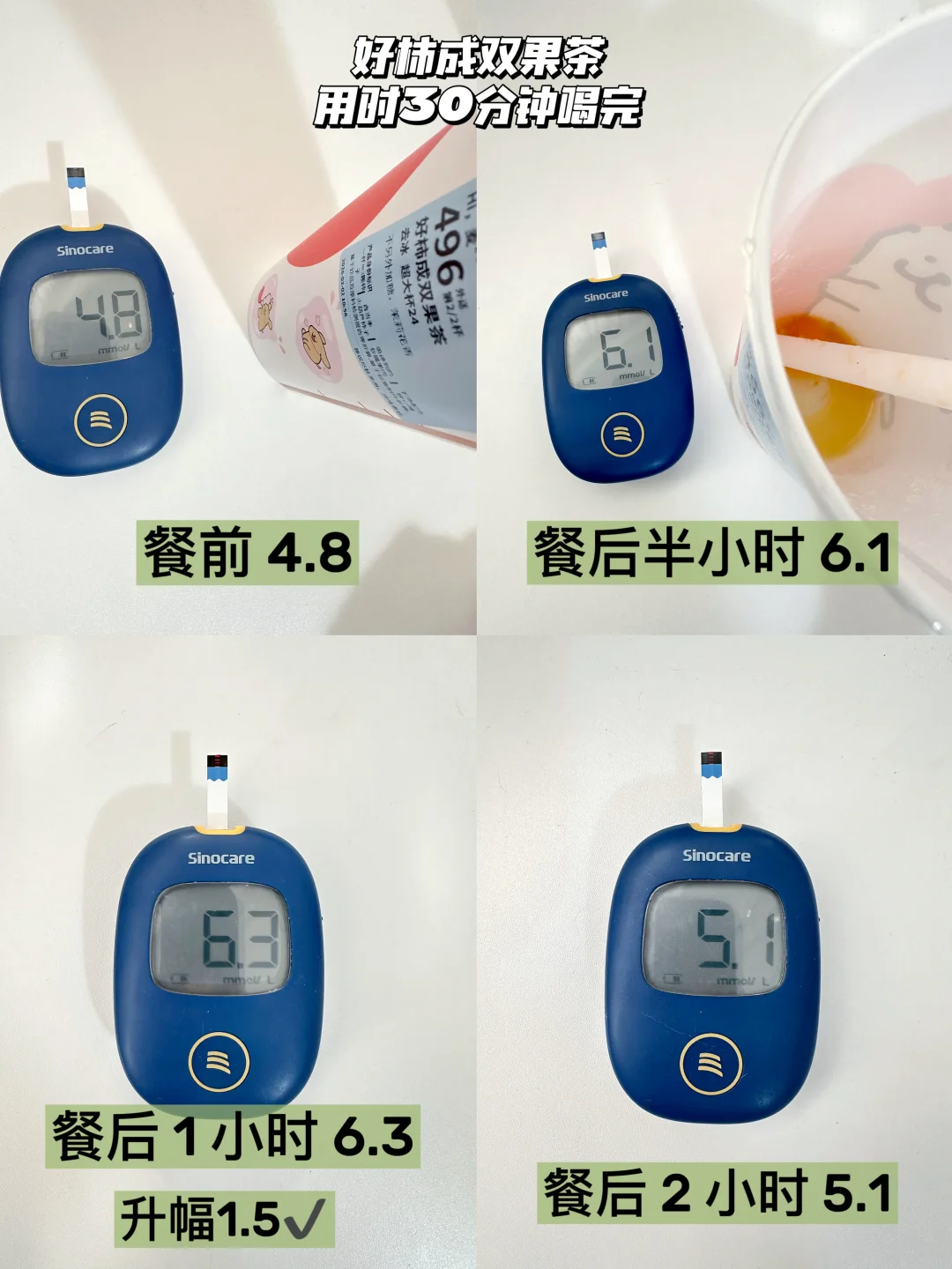 用时30分钟喝完🍬升幅1.5,还可以哦✔
