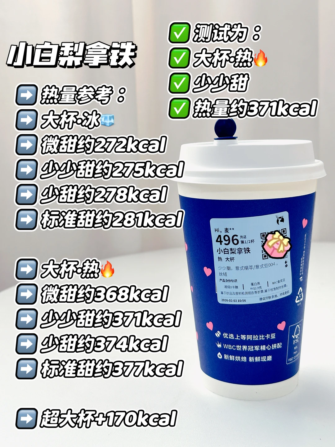 测试为:大杯·热🔥少少甜 热量约371kcal