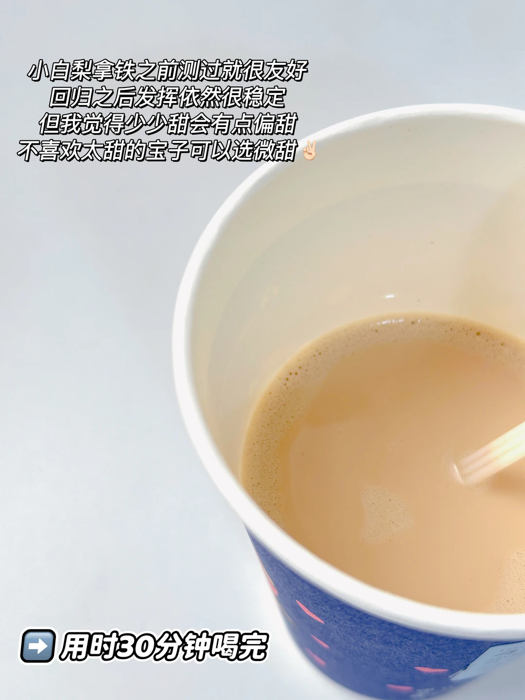 小白梨拿铁之前测过就很友好,回归之后发挥依然很稳定,但我觉得少少甜会有点偏甜,不喜欢太甜的宝子可以选微甜✌🏻