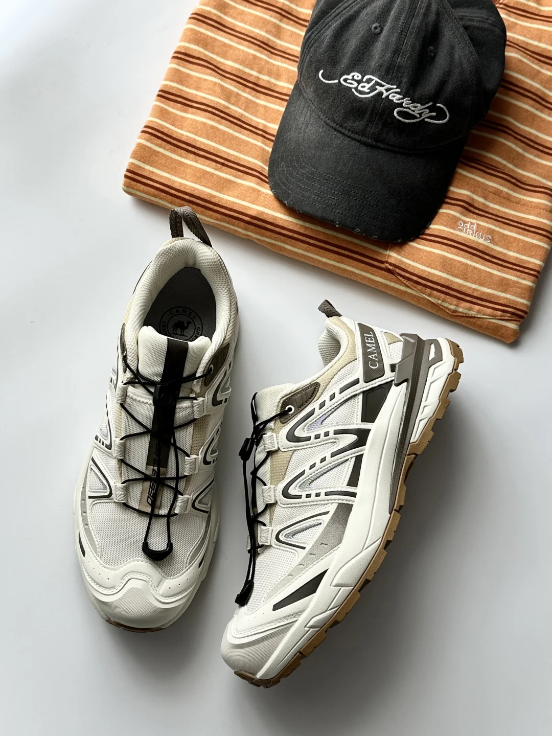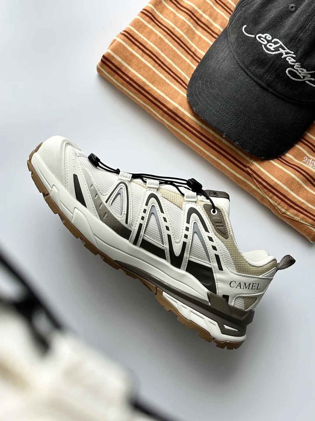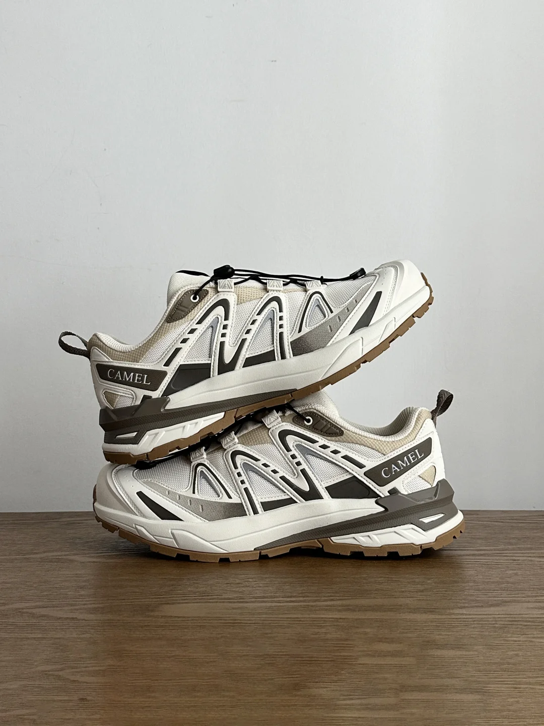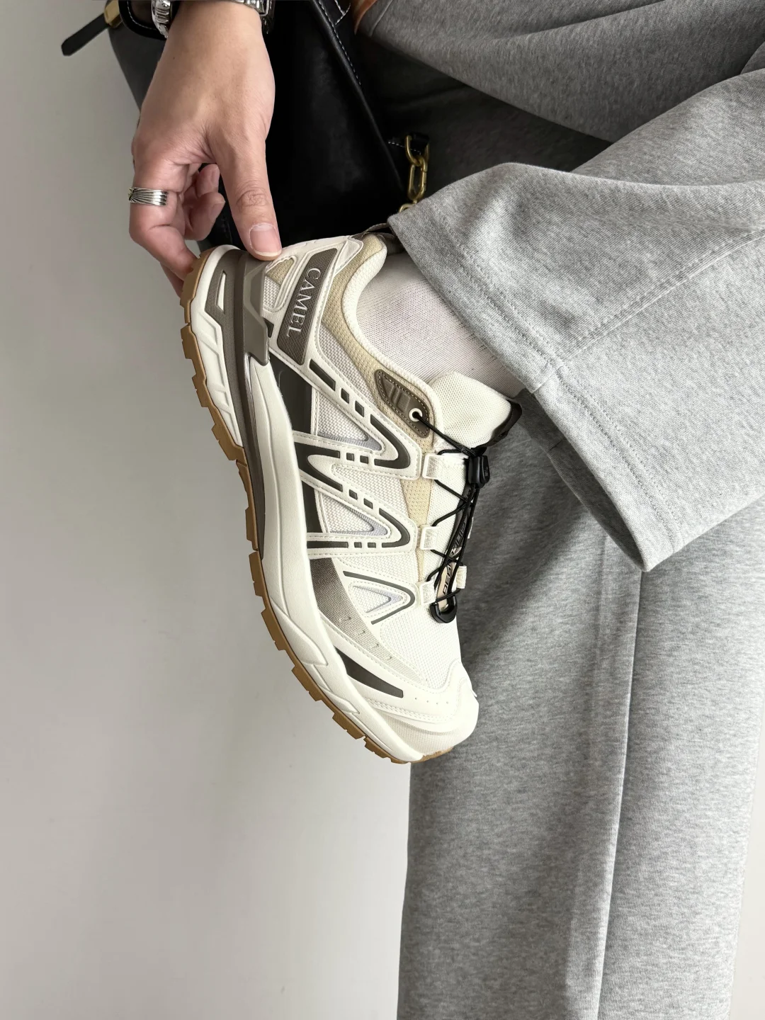 新入的骆驼莫干山 鹭白色真是真香现场! 鞋身低饱和的白灰撞色太高级,完全打破登山鞋笨重土气的刻板印象,鞋型利落不臃肿,很修饰脚型,上脚是修长的鞋型很好看。 抽拉鞋带的设计也很有细节感,穿脱都很方便方便,而且还有4cm的增高! 不管是户外还是日常通勤,都能无缝衔接,户外鞋把时尚属性也点满了。 再加上蜂窝透气网眼鞋面看着就很清爽,橡胶大底的纹路设计也不生硬, 颜值和实用性都在线,这个价位真的很难有对手✨