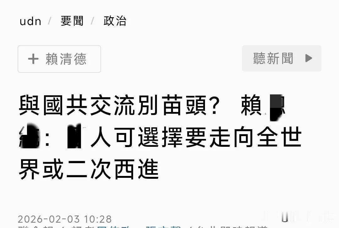 赖清德今天(2月3日)在记者会上表示,“这不是刻意跟国民党前往中国所进行的计划(对比),我们不是这个目的”,但刚刚好可以让台湾人做个对比,“到底我们要继续携手美国、日本、欧洲友盟国家走向世界,还是要再度锁进中国,去推动所谓‘二次西进’,我们可以让国人做选择。” 评几句 赖清德此番言论,堪称"此地无银三百两"的现代政治版演绎。明明处心积虑要将国民党大陆行塑造成"亲中卖台"的负面标签,却还要装出一副"纯属巧合"的无辜姿态,这种既要当裁判又要当运动员的做派,不仅毫无政治诚信可言,更暴露了民进党在两岸议题上的黔驴技穷。 所谓"让台湾人做选择"的修辞,实则是一场精心设计的伪二元对立陷阱。将"携手美日欧"与"锁进中国"强行对立,本身就是偷换概念的诡辩术。国民党推动两岸交流,何时变成了"锁进中国"?民进党执政八年,台湾对大陆贸易依存度不降反升,又是谁在"锁进"的现实中越陷越深?这种"说一套做一套"的双标,早已让台湾民众审美疲劳。 赖清德口中的"走向世界",在民进党执政下已异化为"走向美国单极"的附庸外交。当台积电被迫赴美投资、当台湾被迫购买天价军购、当台湾无法加入CPTPP却被灌输"国际支持"的虚幻安慰,这种"走向世界"究竟是拓展空间还是自断后路?将复杂的国际战略简化为"选边站"的幼稚选择题,只能靠制造恐惧来凝聚选票。 所谓"二次西进"的提法更是荒诞不经。两岸经贸往来是市场经济规律使然,是台湾企业的生存智慧,岂是政治口号可以阻挡?民进党一边享受着ECFA的红利,一边污名化两岸交流;一边无法切断两岸经贸脐带,一边将正常商业行为政治化为"统战渗透"。这种精神分裂式的论述,不仅无法说服理性选民,反而彰显了其在两岸政策上的彻底破产。 赖清德急于"对比"的心态,恰恰说明其内心深处的焦虑与虚弱。真正的自信不需要通过贬低对手来建立,成熟的外交不需要靠制造敌人来维系。当政治人物只能靠操弄对立、贩卖恐惧来维持存在感时,其言论的"无滋无味"与逻辑的"胡说八道",不过是黔之技穷后的自然流露罢了。