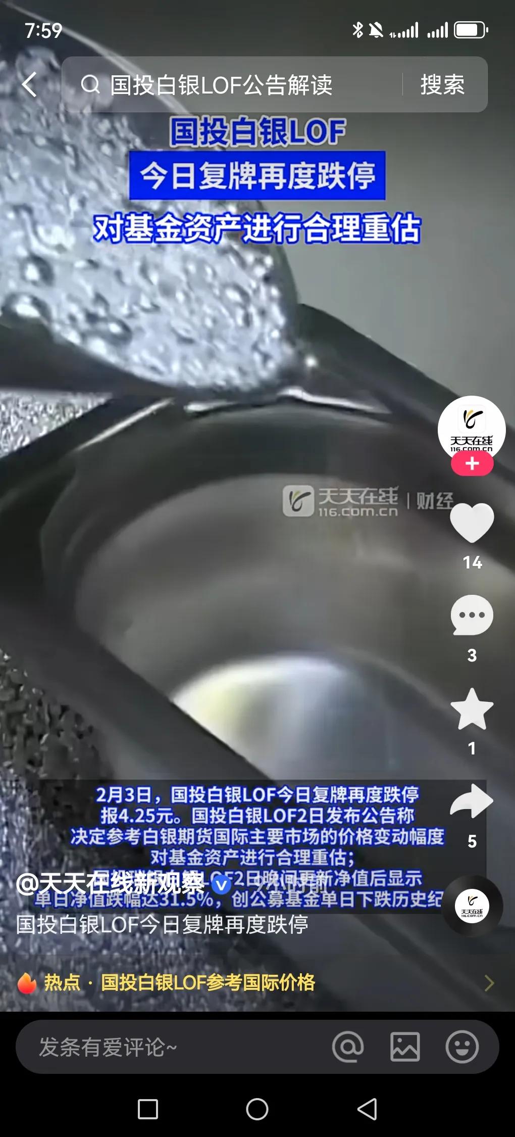 国投瑞银犯事了,白银基金乱改规定,令广大网友啧舌,网友骂声一片,根据相关证券法。修改规则需提前1-2个工作日告知。然而国投瑞银基金愚弄客户,违法操作。盘中说跌10%。盘后偷走顾客20%”利润。这利润就是对白银的从新估值,真的是明抢,我们买的时候为什么提前按国际价格走,现在直接就是扣你账号的钱! 重点是他用明天的规则砍昨天的人,如果你买了国投白银可以拨打证监会号码“12386”来维持自己的自身权益,据说打这电话有的都赔了损失。