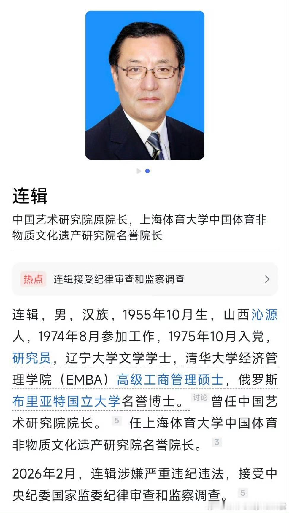 【中国艺术研究院原院长连辑被查】连辑涉嫌严重违纪违法被查 中国艺术研究院原院长连辑涉嫌严重违纪违法,目前正接受中央纪委国家监委纪律审查和监察调查。(总台央视记者 李本扬 宋琎)