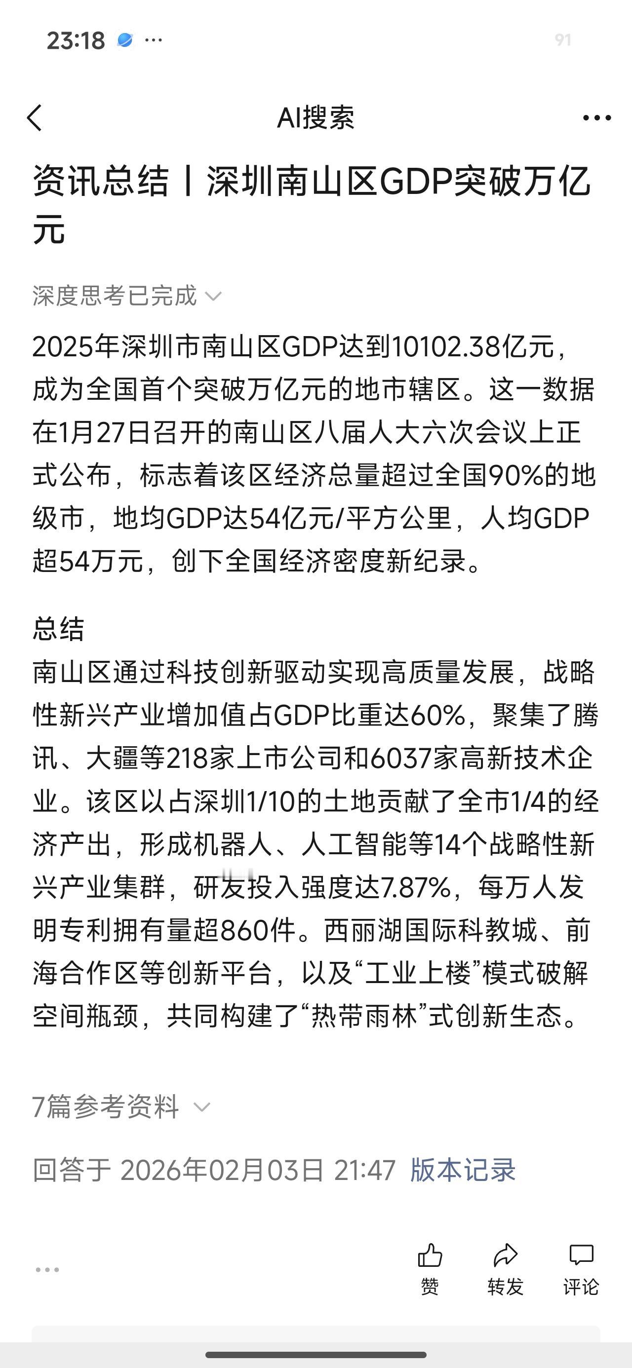 对2025年GDP数据不是太有感觉,但是深圳南山GDP突破万亿确实感觉很震惊,一个面临仅仅185平方公里的弹丸之地,人均GDP达到54 万的惊人数据,这里聚集了218家上市公司,一大批响当当的巨头总部就在这里,毫不夸张地说,这里藏着中国科技产业的半边天。设想一下,如果我们有十个这样的区,我们的实力会是什么样?