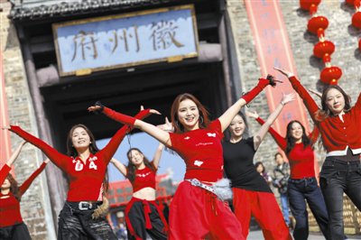 2月3日,舞蹈爱好者在安徽省黄山市歙县徽州古城表演迎新春快闪热舞。当日,一场迎新春快闪热舞在安徽省黄山市歙县徽州古城火热上演,舞者充满活力的热舞与古朴的徽派建筑、高挂的红灯笼相映成趣,吸引众多游客与市民驻足围观,为古城浓郁的年味注入了蓬勃的青春活力。