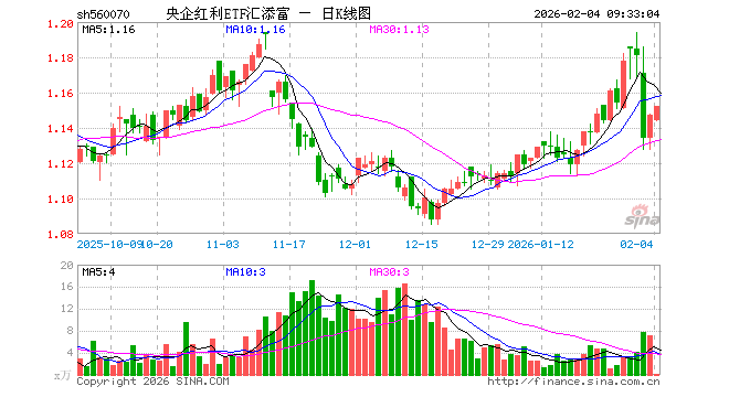 2月4日,央企红利ETF汇添富(560070)开盘跌0.26%,报1.144元。央企红利ETF汇添富(560070)重仓股方面,中远海控开盘涨0.14%,中国神华涨0.13%,中粮糖业涨1.25%,中国石油涨2.01%,中国石化涨0.79%,中国海油涨1.98%,中国外运涨0.18%,招商银行涨0.00%,宝钢股份跌0.28%,四川美丰跌0.15%。