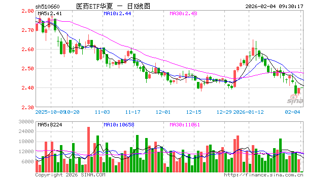 2月4日,医药ETF华夏(510660)开盘涨0.04%,报2.399元。医药ETF华夏(510660)重仓股方面,药明康德开盘跌0.63%,恒瑞医药跌0.30%,联影医疗跌0.17%,片仔癀涨0.17%,复星医药涨0.04%,百济神州跌0.09%,艾力斯涨0.67%,百利天恒跌0.71%,甘李药业跌0.61%,同仁堂涨0.13%。