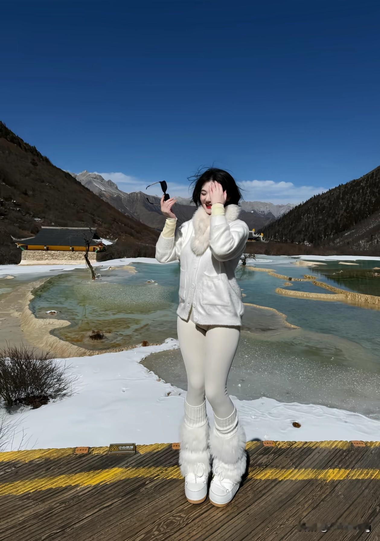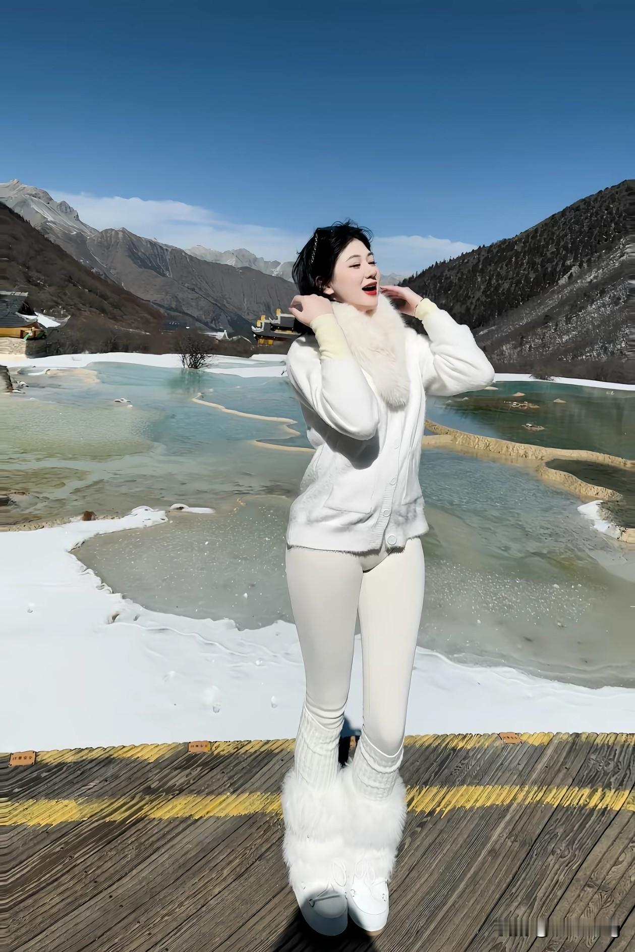 ❄️冬日仙境,遇见最美的自己! 一身纯白穿搭,与黄龙的钙华池、雪山蓝天完美融合~ 脚下是千年沉淀的“瑶池”,身后是巍峨的岷山山脉,随手一拍都是电影感大片! 谁说冬天只能宅家?来黄龙,做雪域里的精灵吧✨ 黄龙风景区 冬日旅行 雪景拍照 OOTD 旅行穿搭