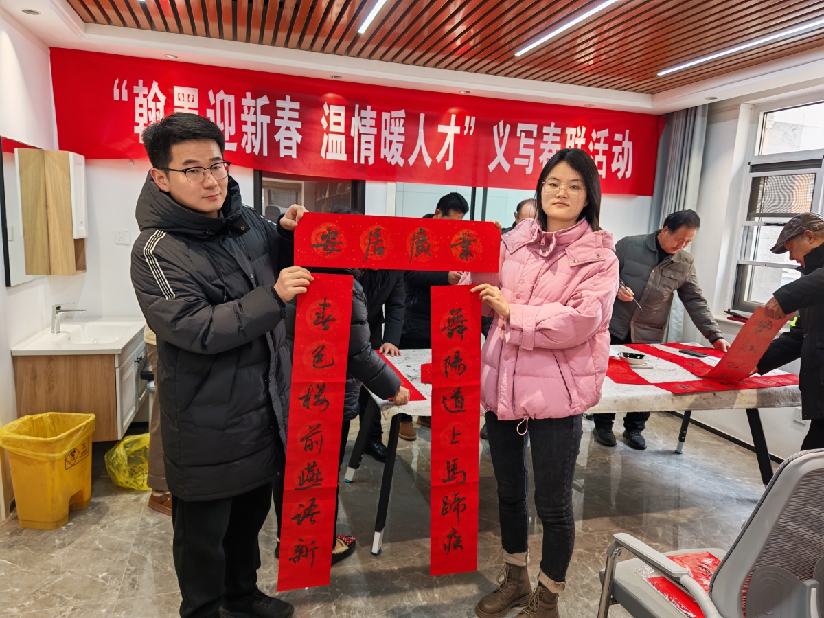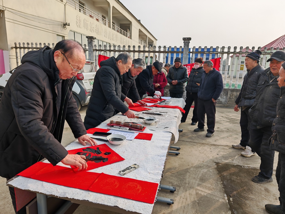 近日,漯河市舞阳县委组织部组织县老干部学校书画班学员,深入保和乡岗张村、孟寨镇孟王村和县人才公寓,开展义写春联志愿服务活动,将传统年味与文化惠民深度融合,为广大群众送上了一份特别的“年货”。