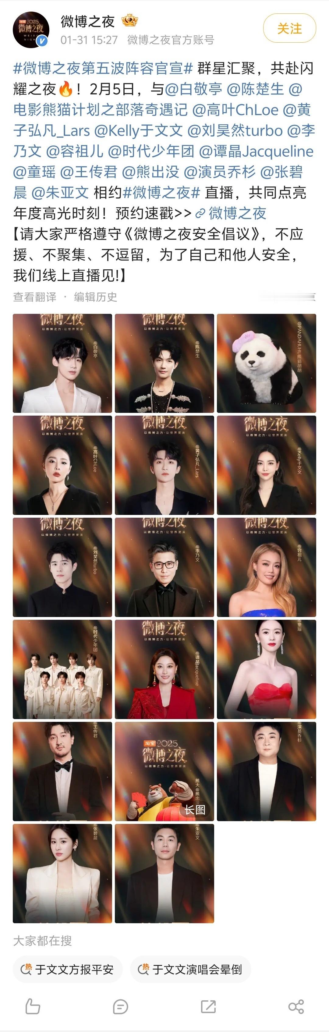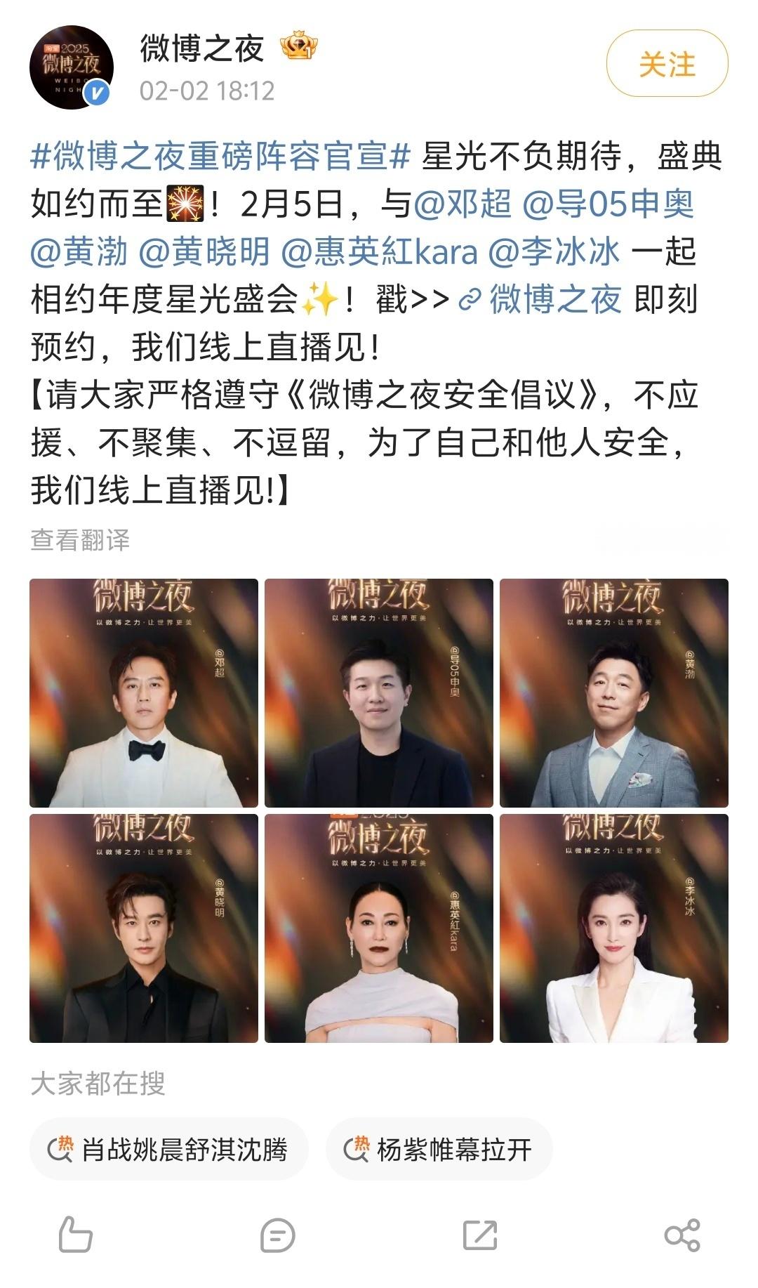 【微博之夜最想看的明星】微博之夜倒计时1天啦 !再来和小鱼妹儿回顾这组超强星光阵容↓你最期待谁的舞台?我们一起期待!微博之夜最期待同框的明星
