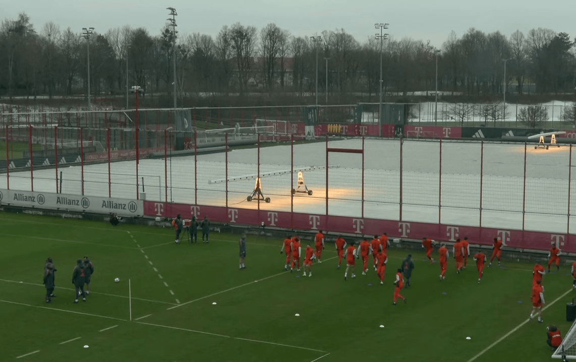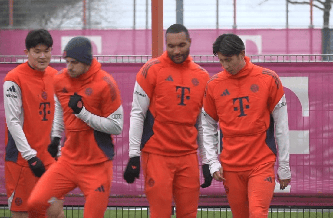 除凯恩因生病缺席外,拜仁今天的队内训练阵容完整